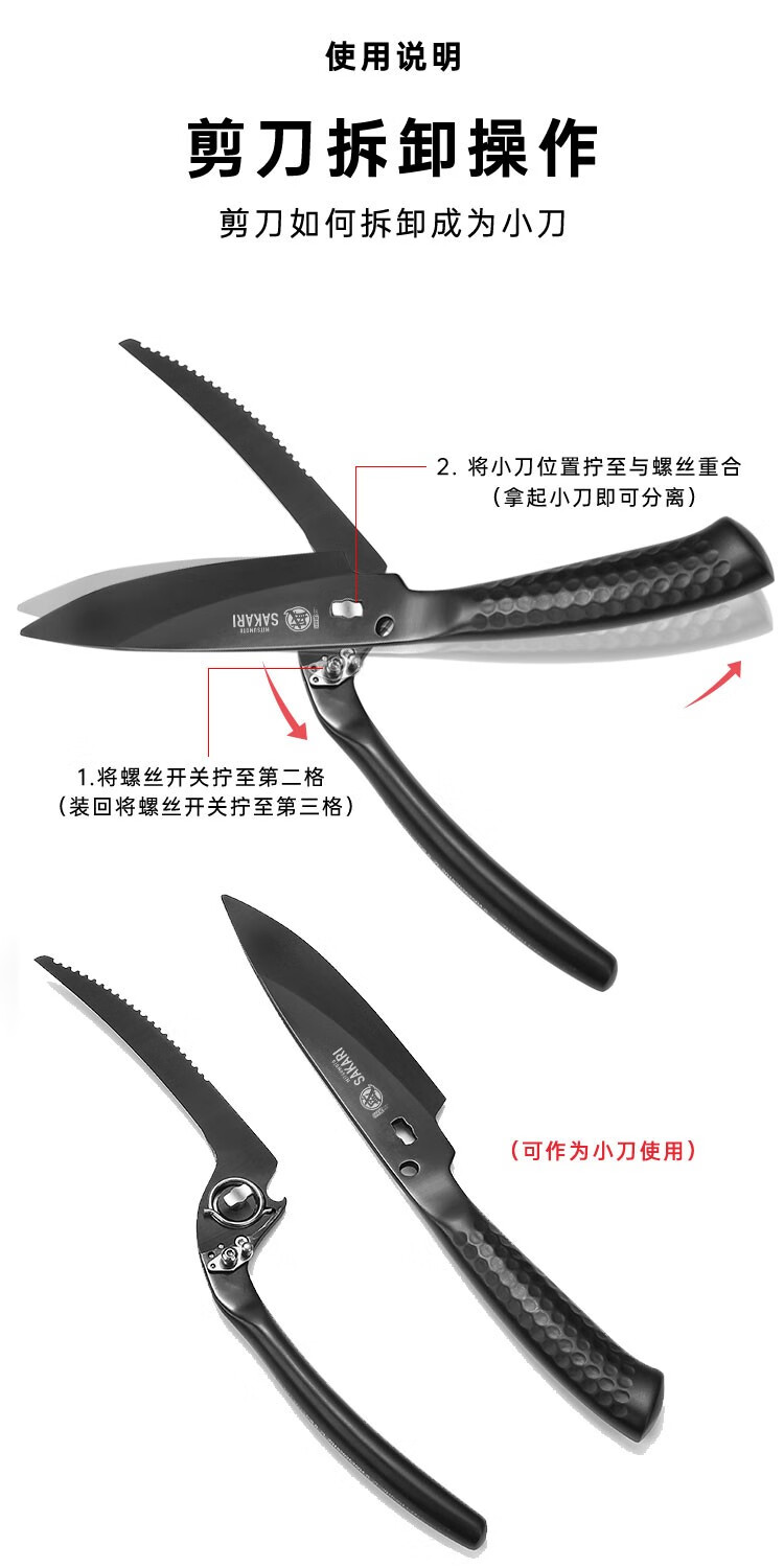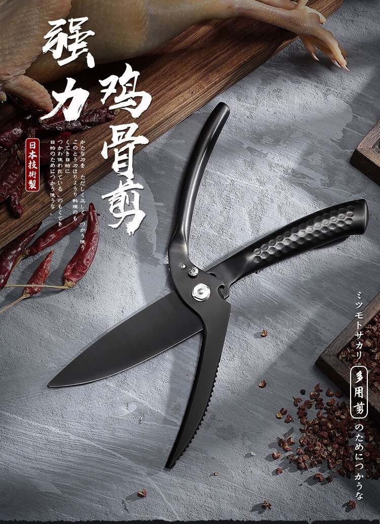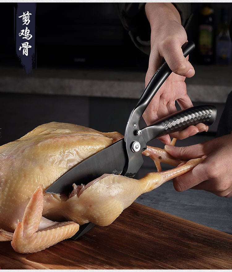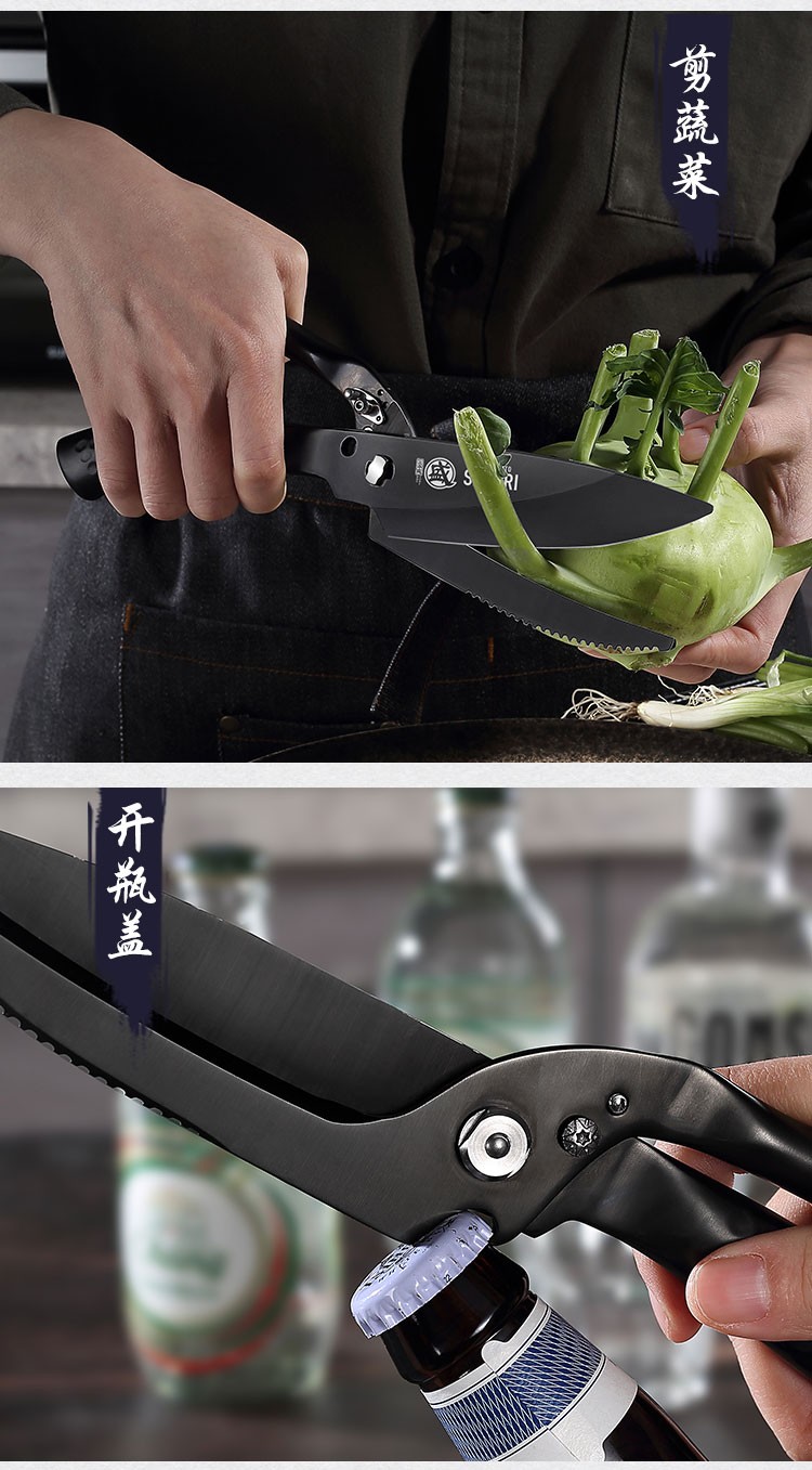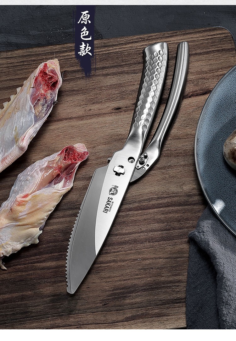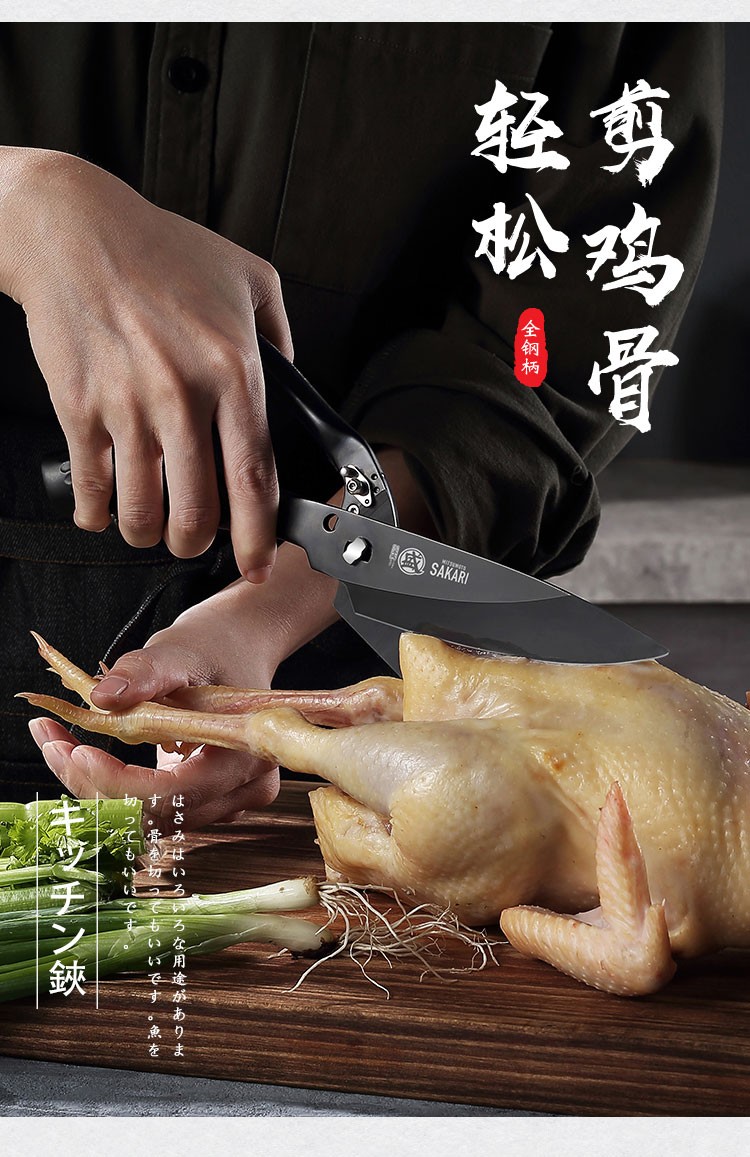Japan's Sanhonsheng kitchen scissors, household powerful chicken bone scissors, stainless steel fish-killing scissors, bone-cutting Japanese-style multi-functional scissors, removable chicken bone scissors, all-steel titanium-plated