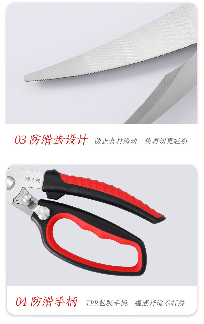 Zhang Xiaoquan scissors, kitchen chicken bone scissors, special powerful scissors for cutting bones, large scissors for cutting meat, stainless steel fish-killing food barbecue scissors, multi-functional Hongyun kitchen scissors