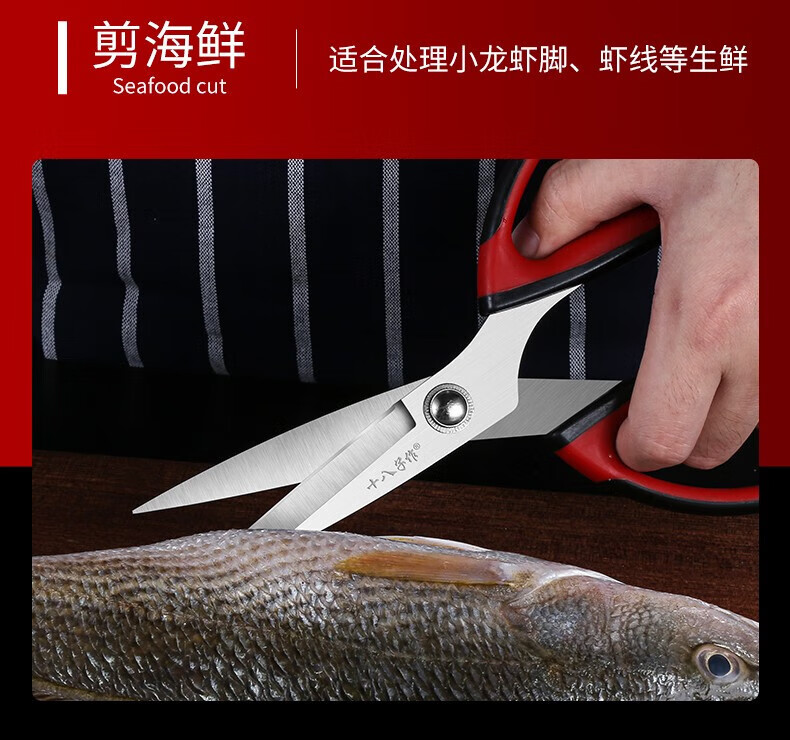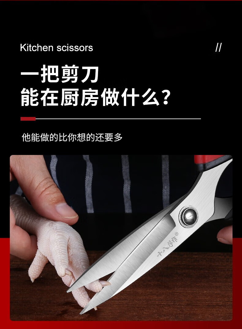 十八子作 厨房剪刀 剪骨头专用食物剪不锈钢多功能强力鸡骨剪杀鱼 家用超强厨房剪【大号】