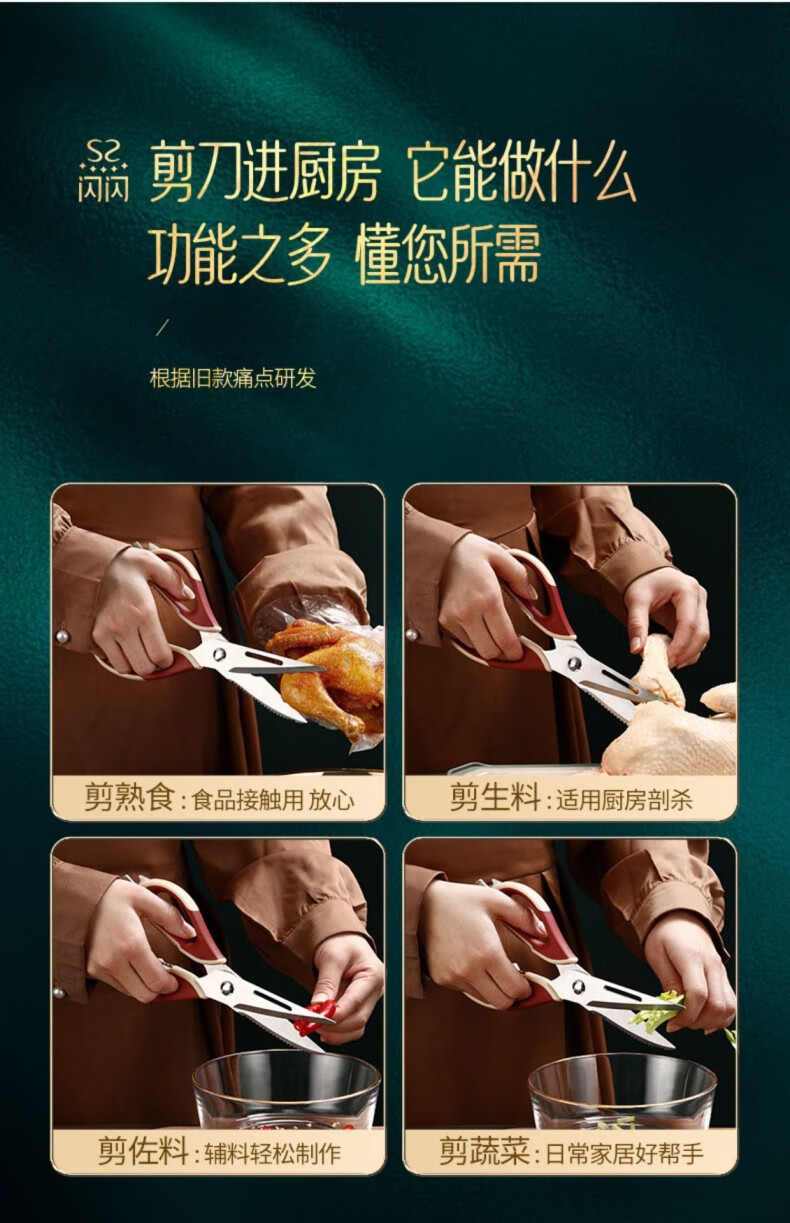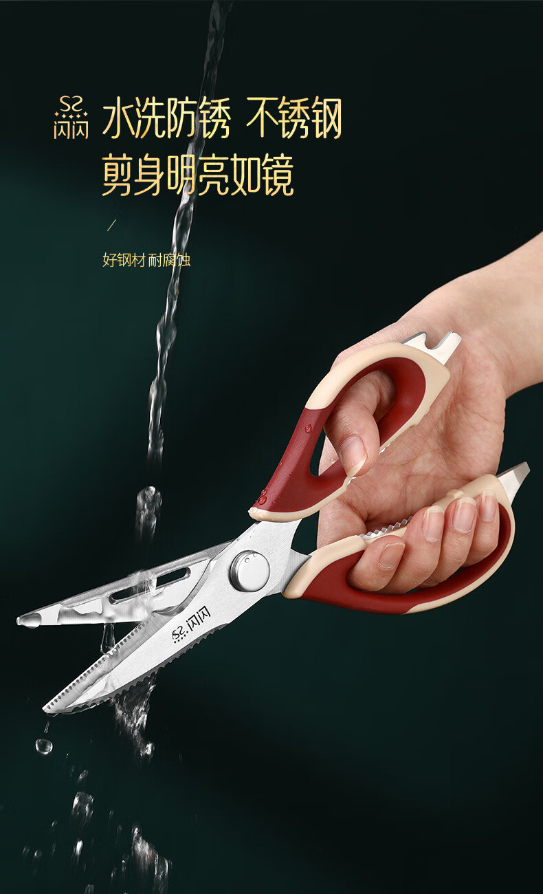 闪闪优品厨房专用剪刀食用剪刀厨房剪刀鸡骨剪多功能剪刀杀鱼剪刀家用食物 多功能厨房剪刀(配冰箱磁吸套)