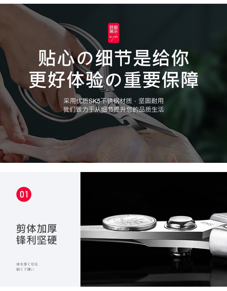 德国进口品质鸡骨剪刀 不锈钢工业强力子厨房厨房用 经典1代(银色款)