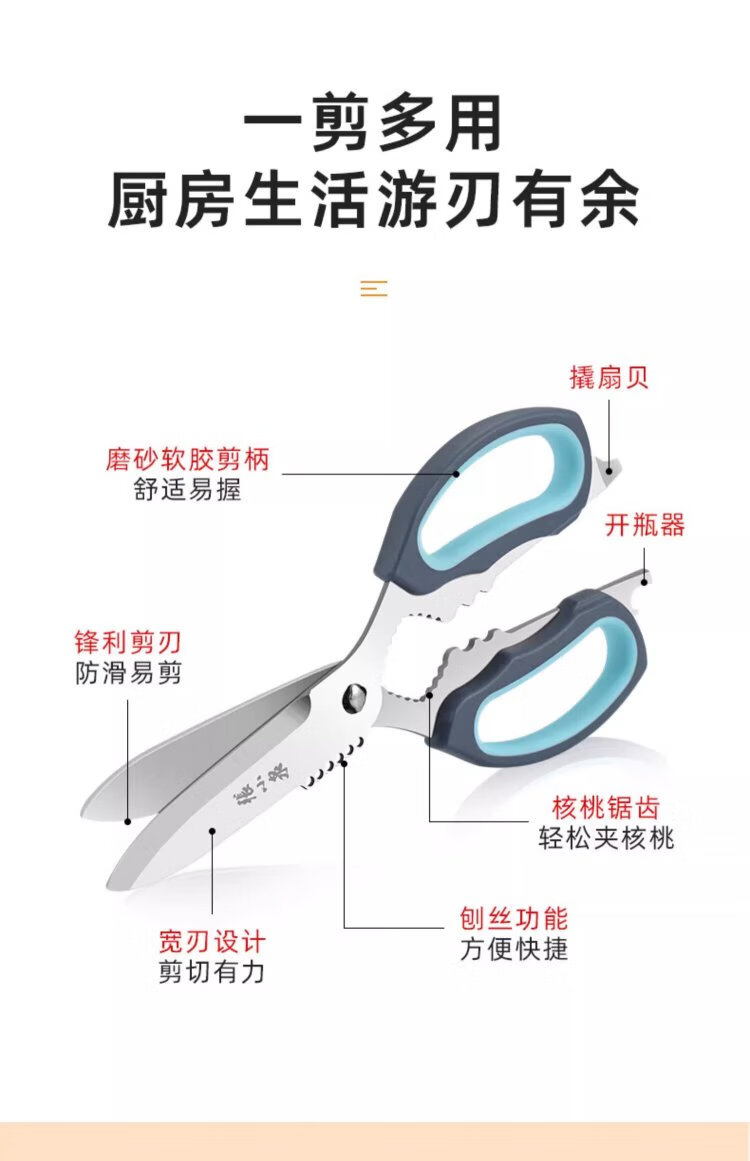 张小泉厨房剪刀家用不锈钢强力鸡骨剪多功能鱼骨食物杀鱼神器剪子