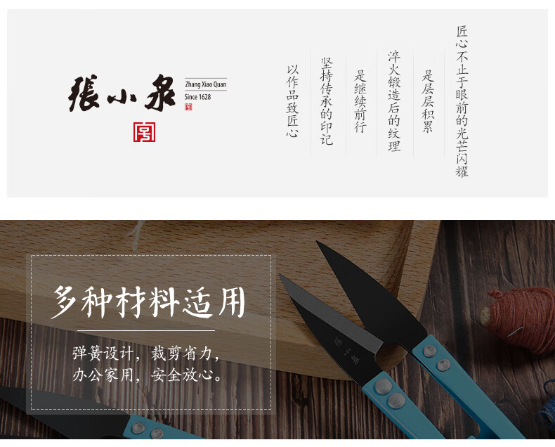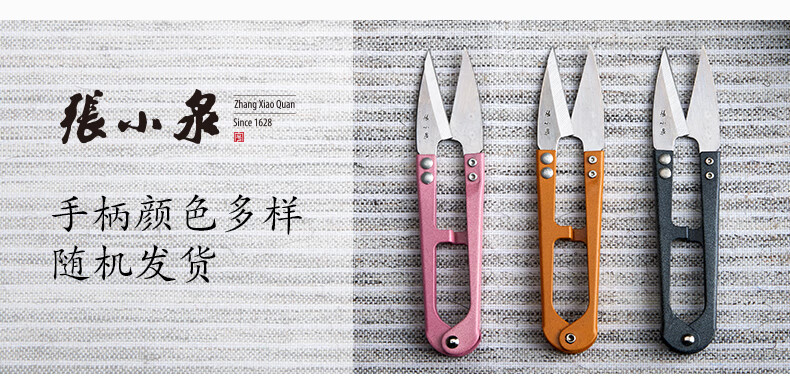 张小泉纱剪 线头小剪刀家用U型弹簧剪刀衣服装裁缝纫布小号剪子 3把大号纱剪(发黑)紫色