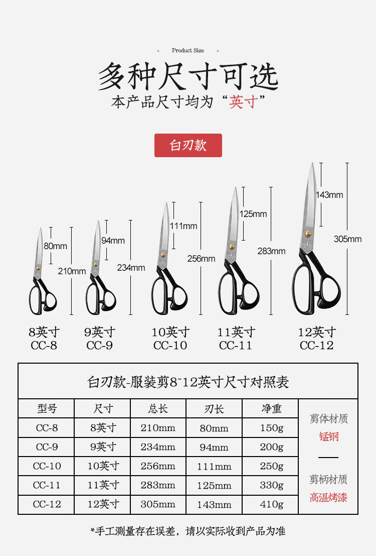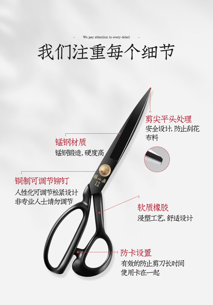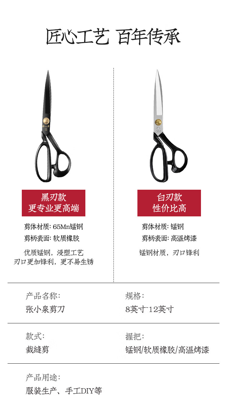 Zhang Xiaoquan große Schere, scharfes Schneiden, Manganstahlkanten, Industriekleidung, Nähen Nr. 08–12, Schneiderschere, 9 Zoll, hochwertige Schneiderschere, schwarze Klinge