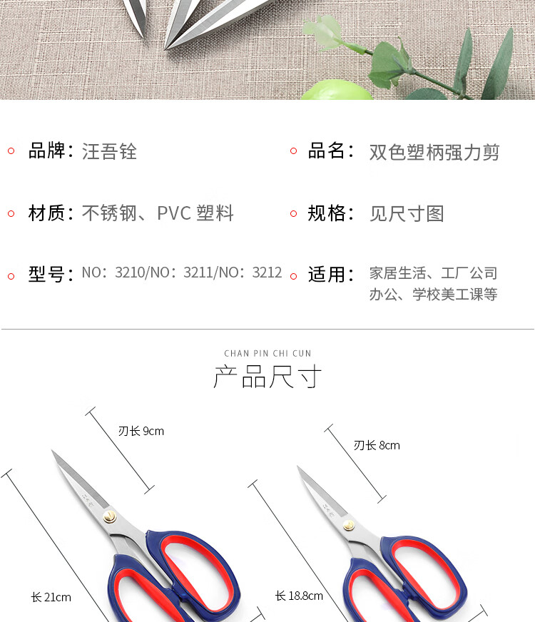 Wang Wuquan Wang Wuquan tijeras para el hogar tijeras fuertes tijeras de cocina tijeras de oficina fortalecer tijeras fuertes tijeras de acero inoxidable de dos colores 3210 tijeras fuertes de dos colores longitud total 21 cm