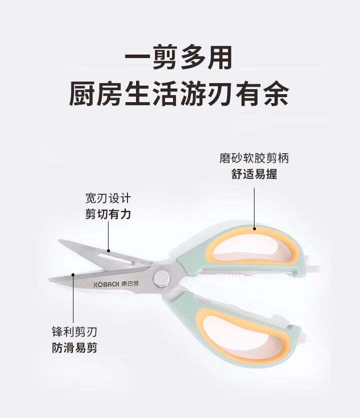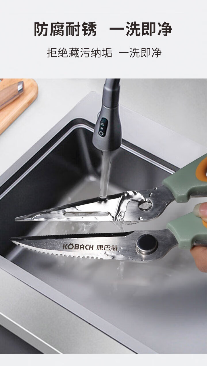 Konbach (KBH) stainless steel scissors kitchen multi-purpose peel and fish scale scissors durable and sharp household multi-purpose kitchen scissors