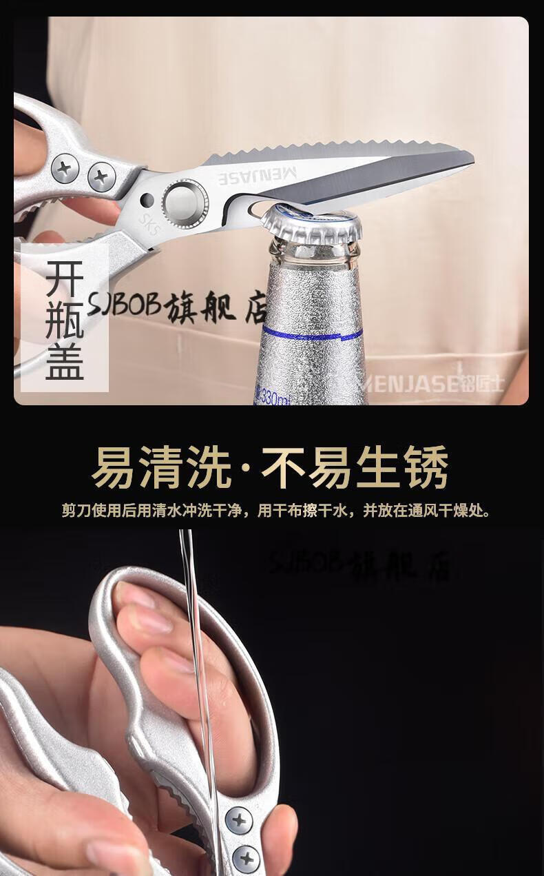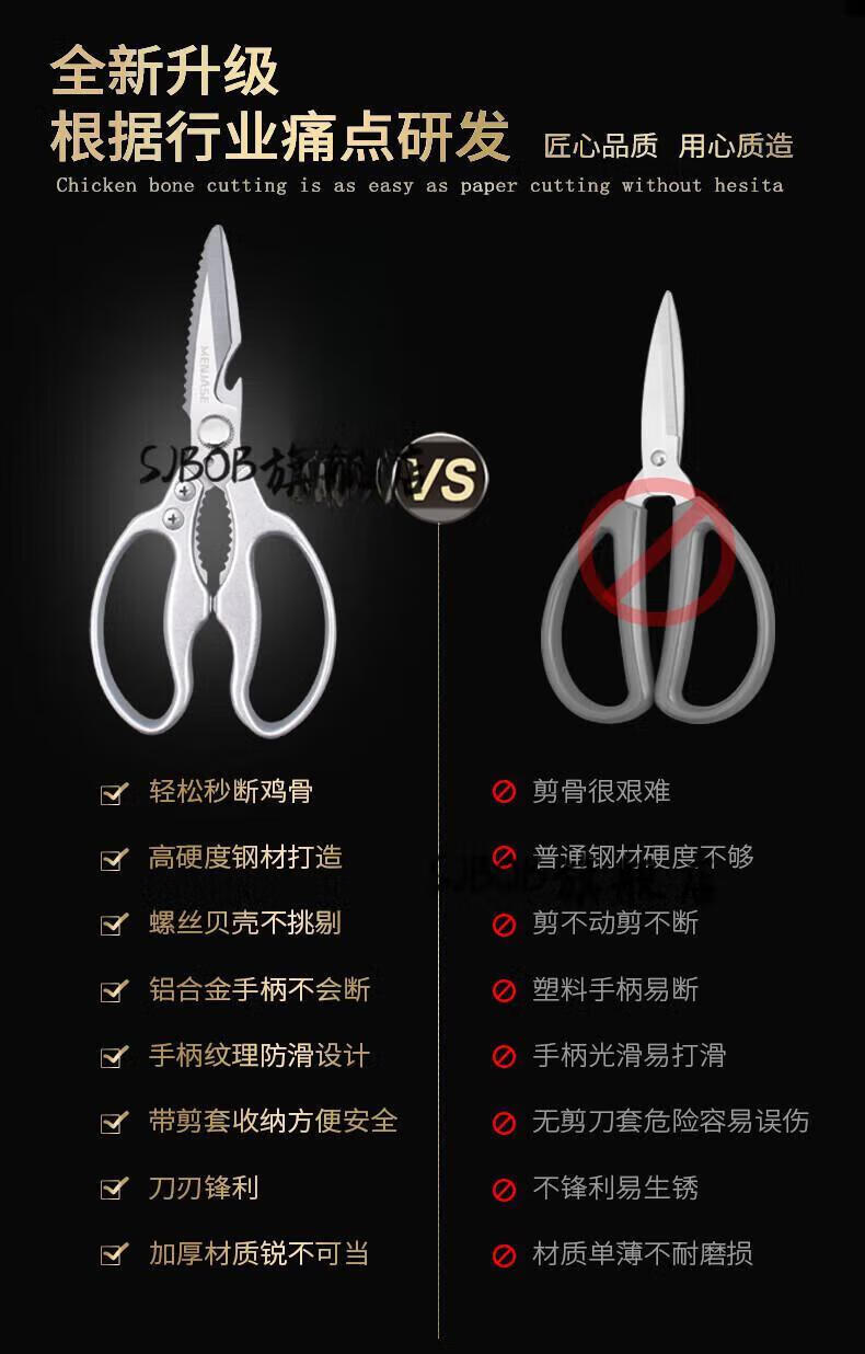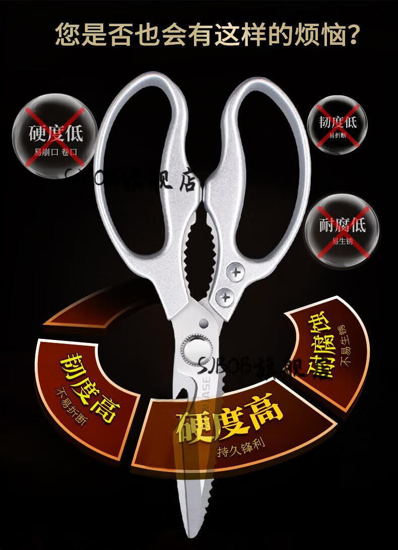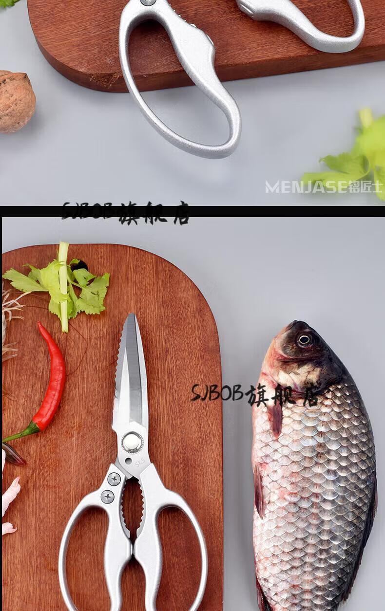SJBOB Ciseaux de cuisine en acier inoxydable importés du Japon, ciseaux à os de poulet multifonctionnels et puissants, ciseaux à os spéciaux pour poulet de chair, canard, oie et poisson, argent, ciseaux de cuisine multifonctionnels améliorés