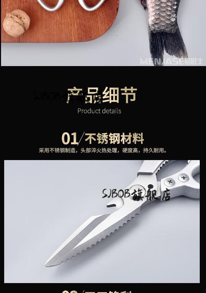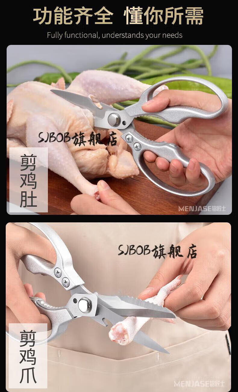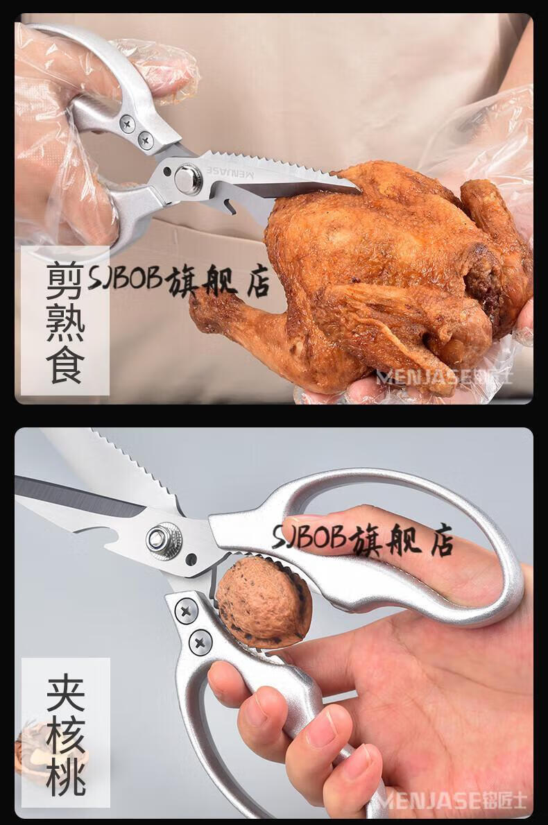 SJBOB Ciseaux de cuisine en acier inoxydable importés du Japon, ciseaux à os de poulet multifonctionnels et puissants, ciseaux à os spéciaux pour poulet de chair, canard, oie et poisson, argent, ciseaux de cuisine multifonctionnels améliorés