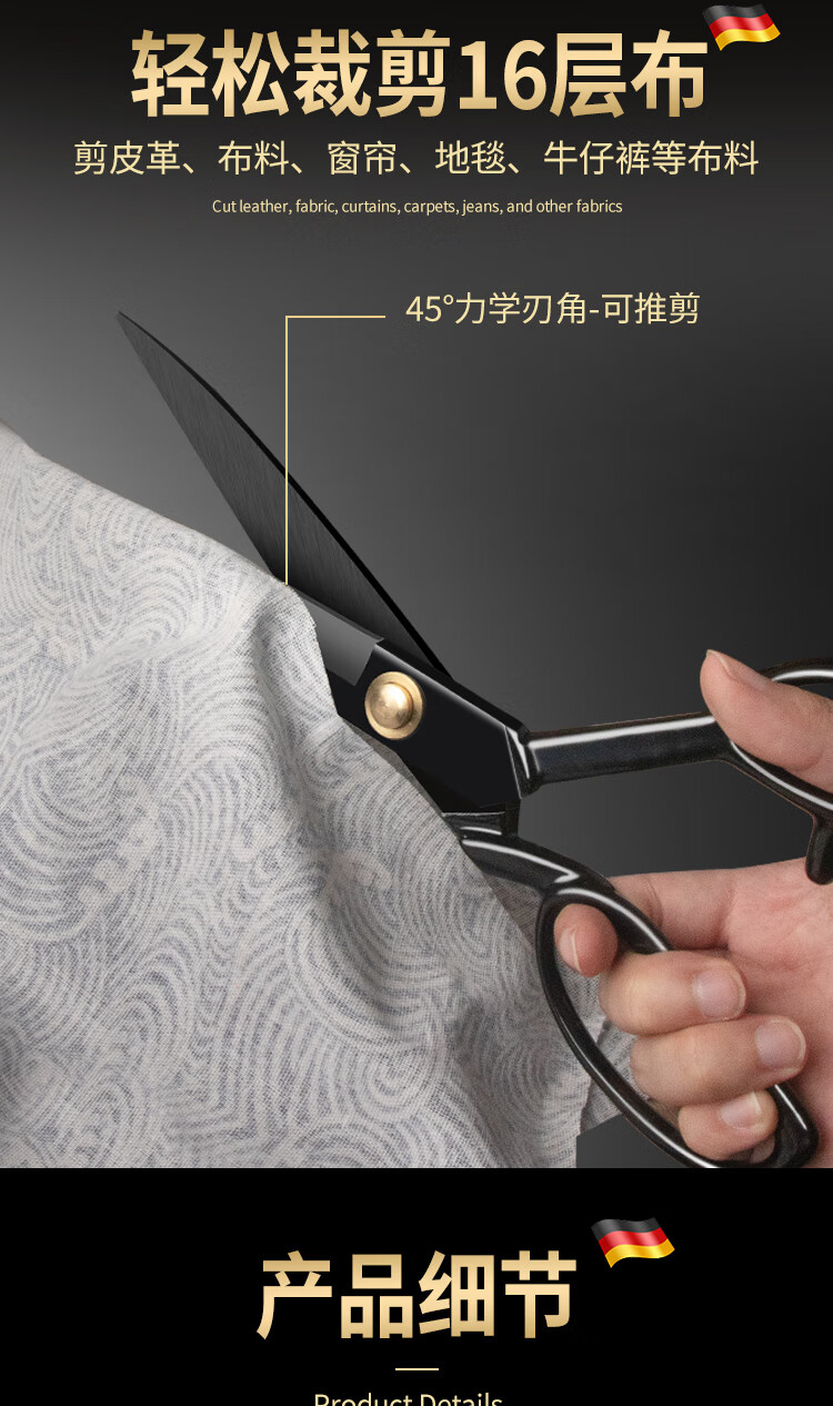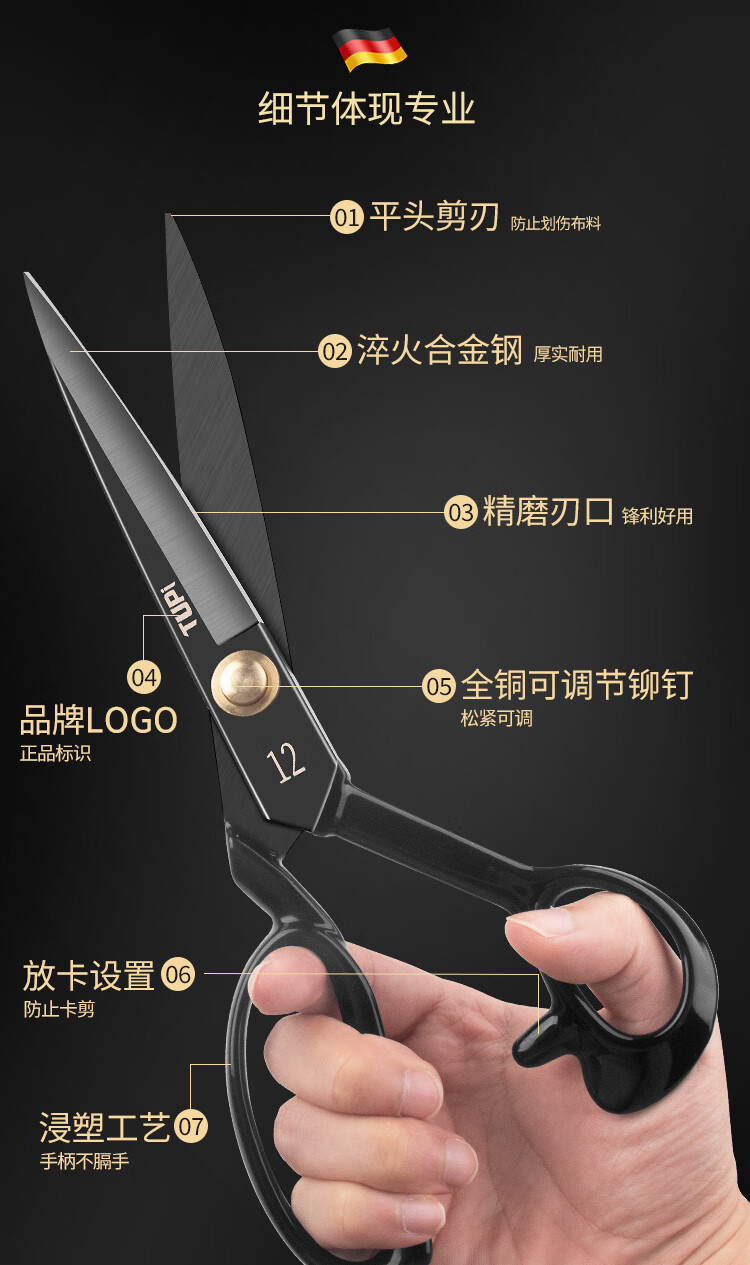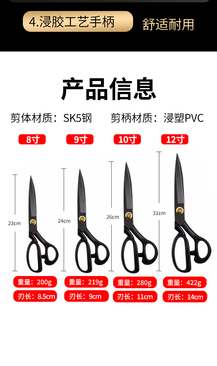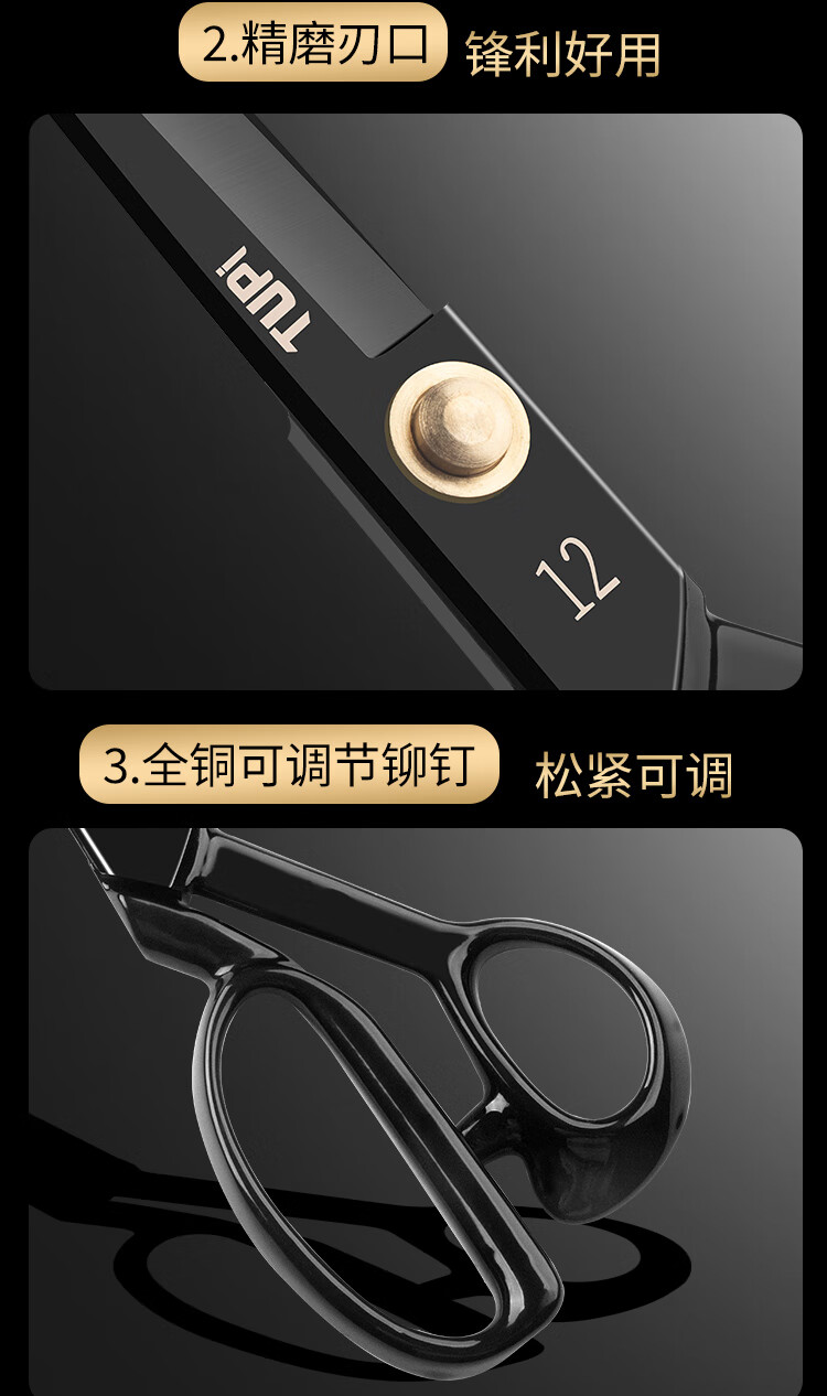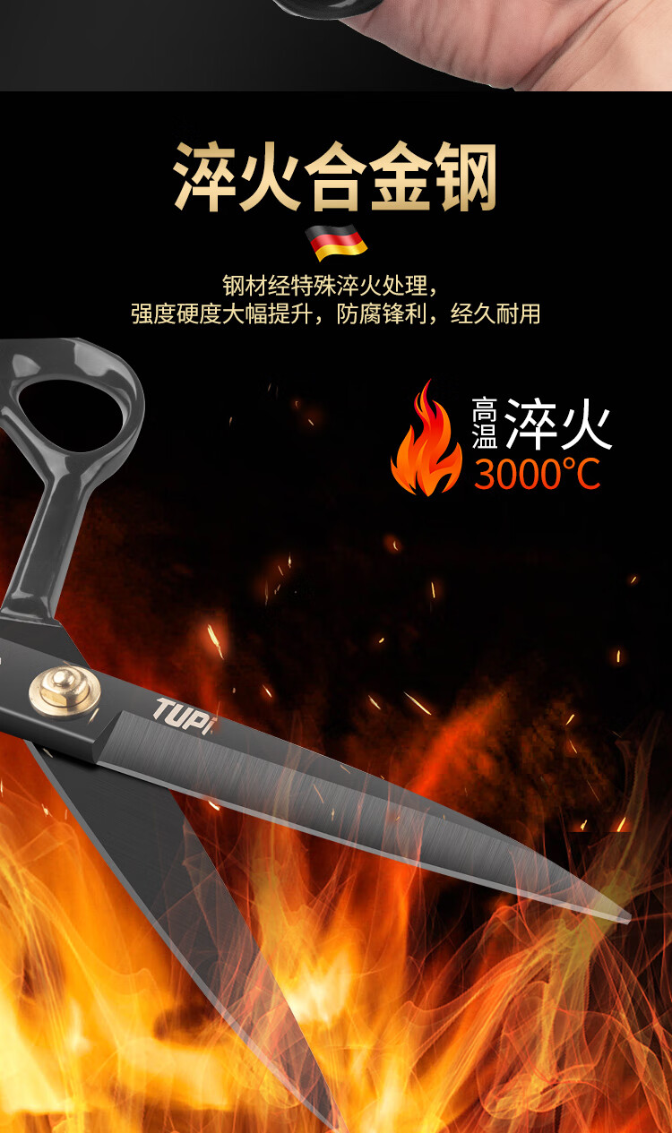 TUPI professional tailor scissors tailor special cloth cutting special sewing cloth cutting household large scissors all stainless steel industrial 8 inches