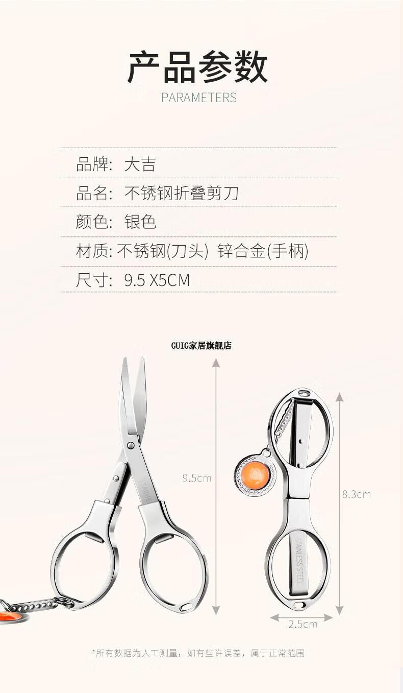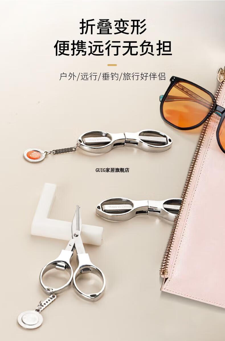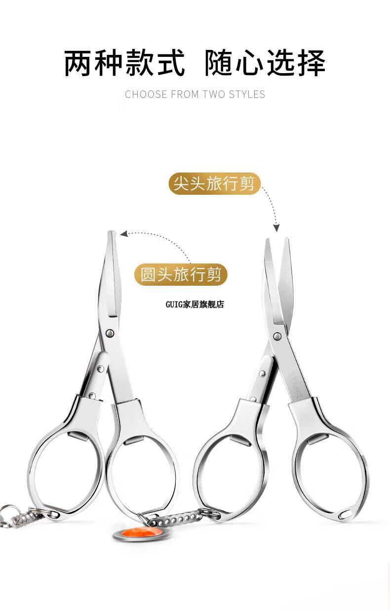 GUIG德国折叠小剪刀便捷式不锈钢大吉随身便携迷你钓鱼家用号线头旅行 (旅行剪圆头+尖头)