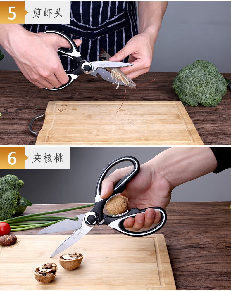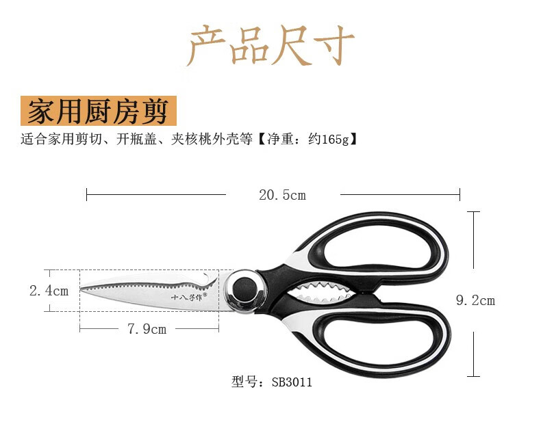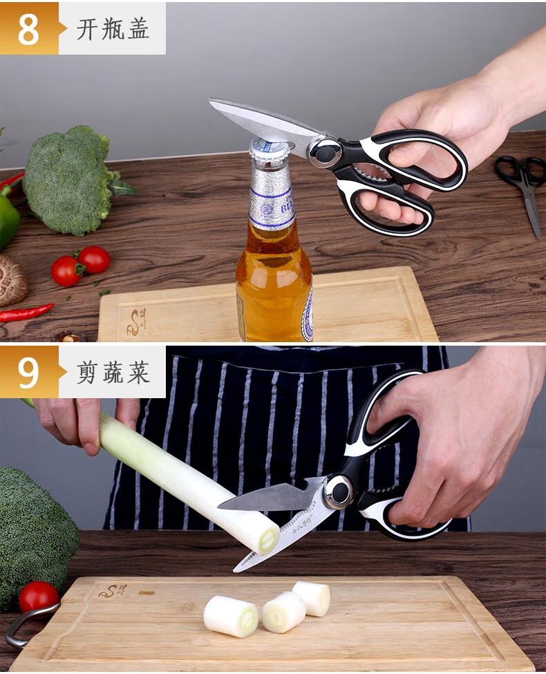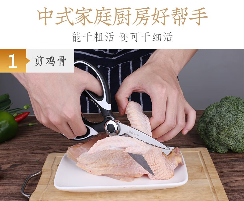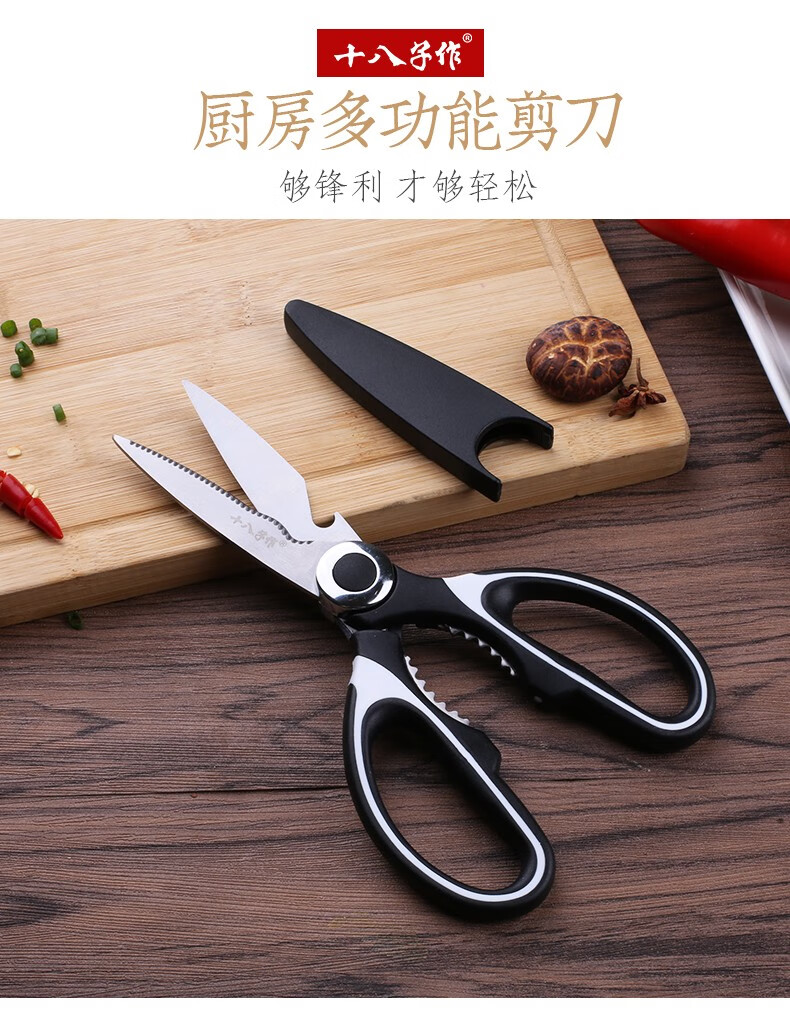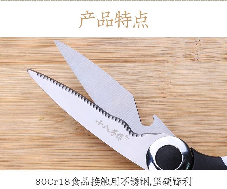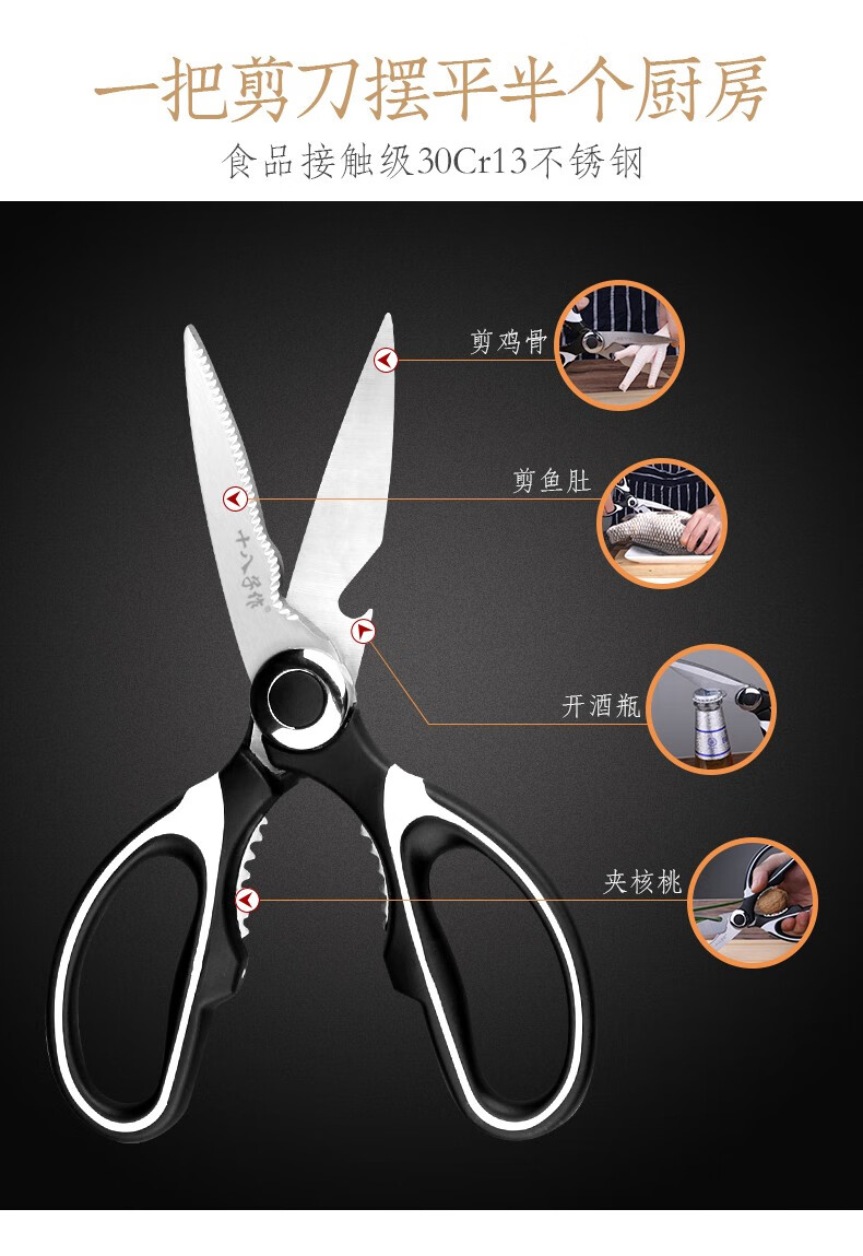 Shibazizuo kitchen scissors multifunctional powerful chicken bone cutter bottle opener stainless steel household chicken bone fish bone walnut clip kitchen scissors (without set)