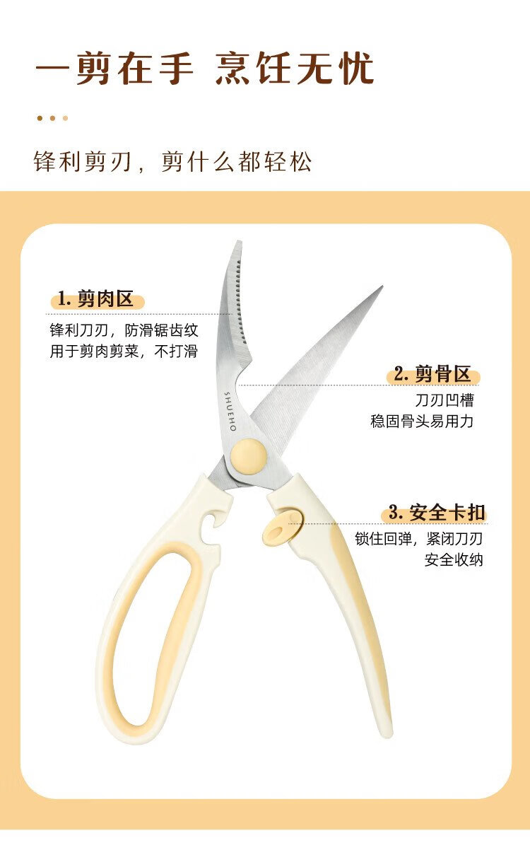 Shuke kitchen scissors special multi-functional powerful deli kitchen household stainless steel barbecue scissors vegetable chicken and duck meat single deli scissors
