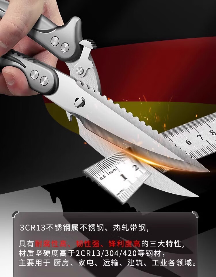 Jinda Rimei Kitchen Scissors Sharp Stainless Steel Multi-Function Cutting Chicken, Duck and Goose Bones Special Powerful Large Chicken Bone Scissors Kitchen Powerful Chicken Bone Scissors Detachable Style