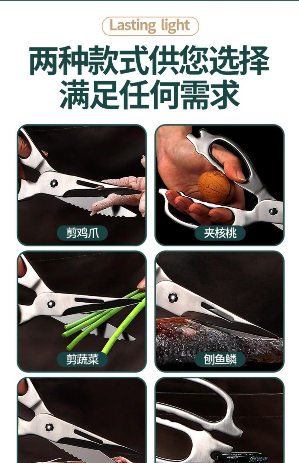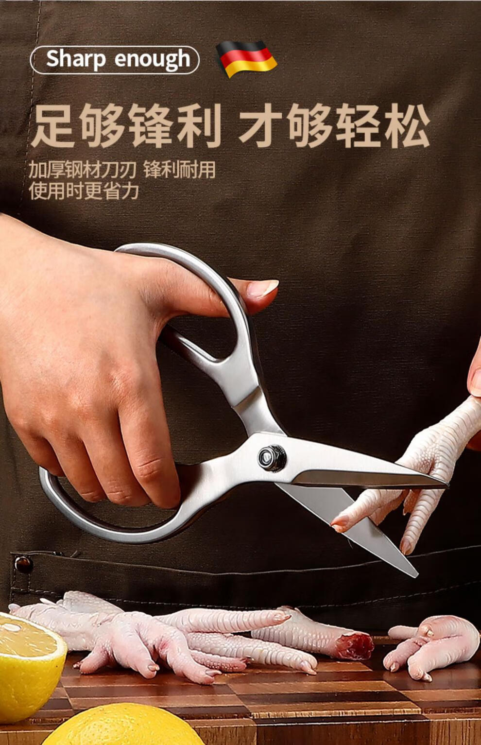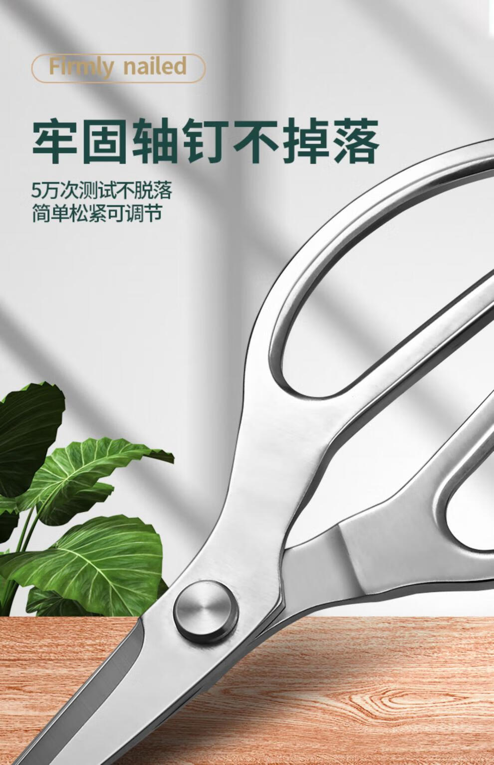 Jingyouyu German Seiko Kitchen Scissors Stainless Steel 304 All-Steel Multi-Function Scissors for Killing Fish and Hard Objects to Cut Bones Scissors Home All-Steel Scissors