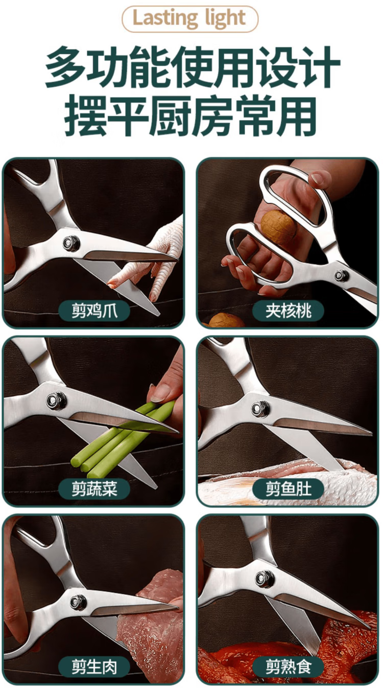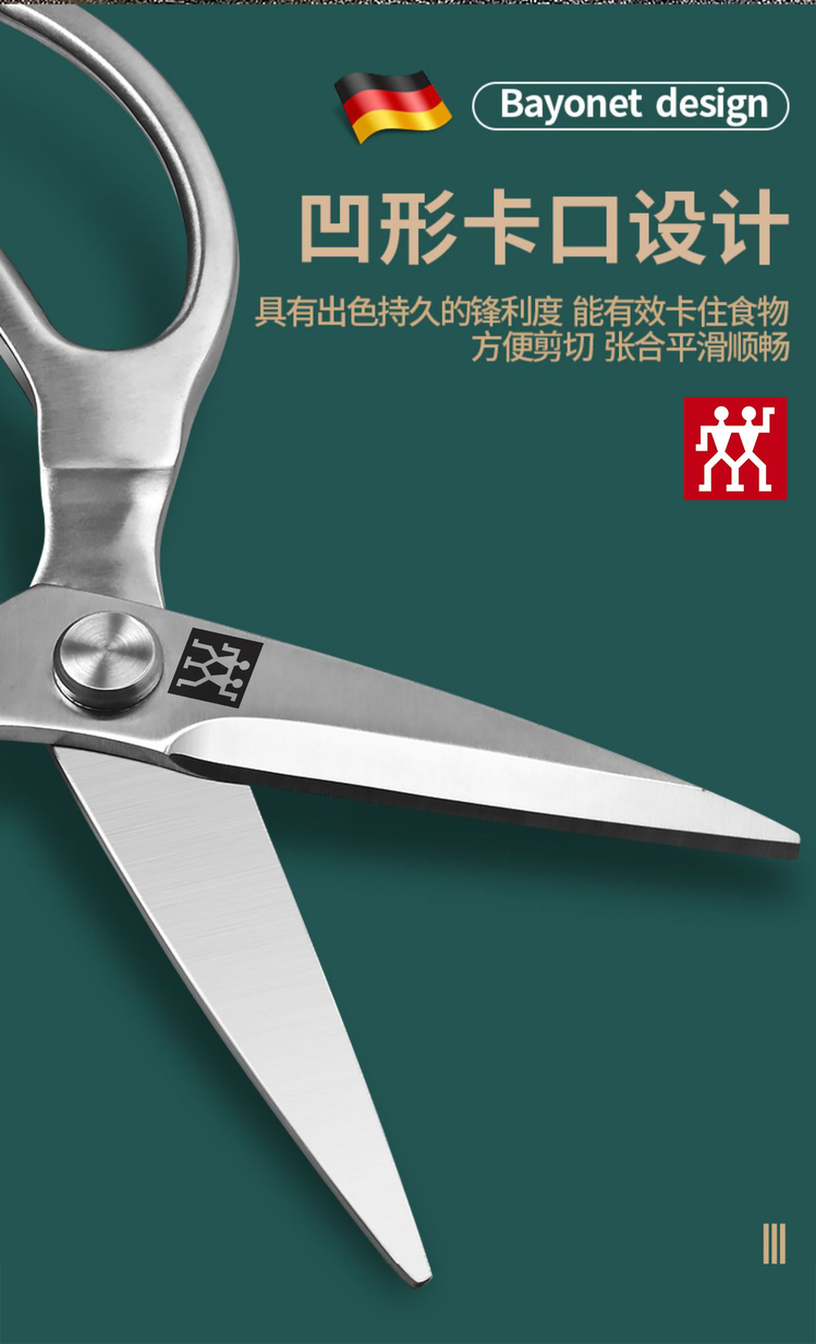 ZWILLING Ciseaux de cuisine en acier inoxydable d'origine allemande Ciseaux à os de poulet solides pour la maison Ciseaux alimentaires Ciseaux pour barbecue en plein air Tout en acier