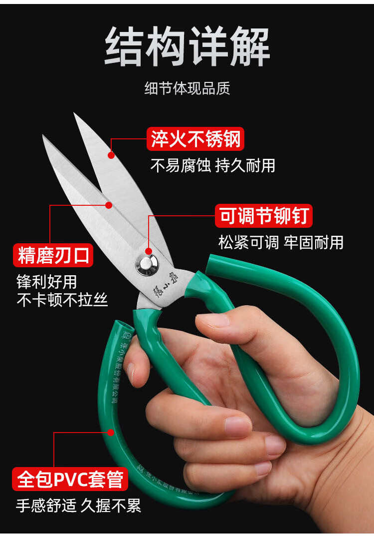 Zhang Xiaoquan Tijeras de corte a medida Tijeras de tela para cortinas Tijeras de costura Tijeras industriales Tijeras grandes Tijeras de jardín Tijeras de cuero de acero Meng Longitud total pequeña 21,5 cm