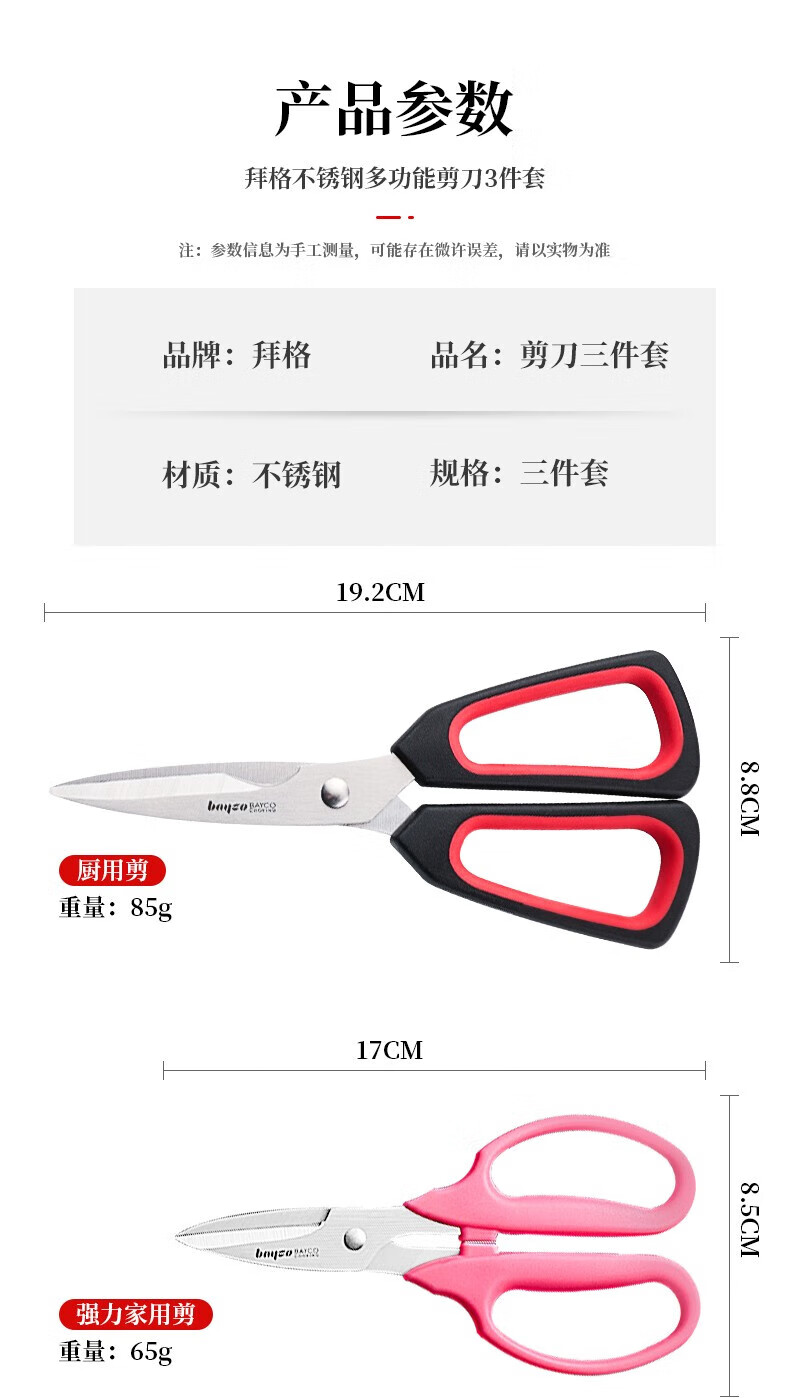 Tijeras Baig Tijeras de cocina multifuncionales Tijeras domésticas de acero inoxidable Tijeras de sastre Tijeras de mano Tijeras para huesos de pollo Juego de utensilios de cocina Tijeras de cocina Juego de tres piezas