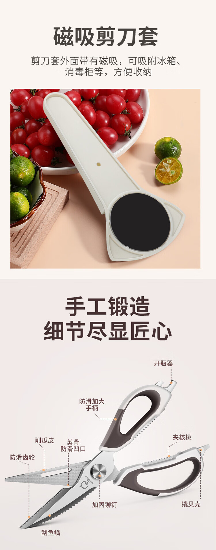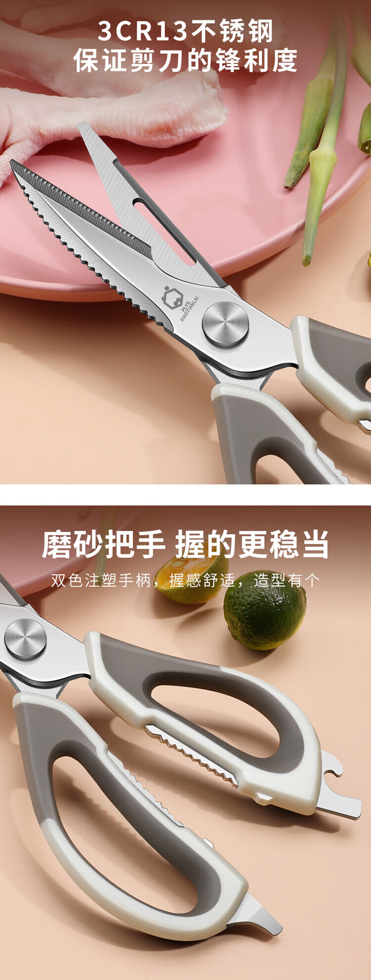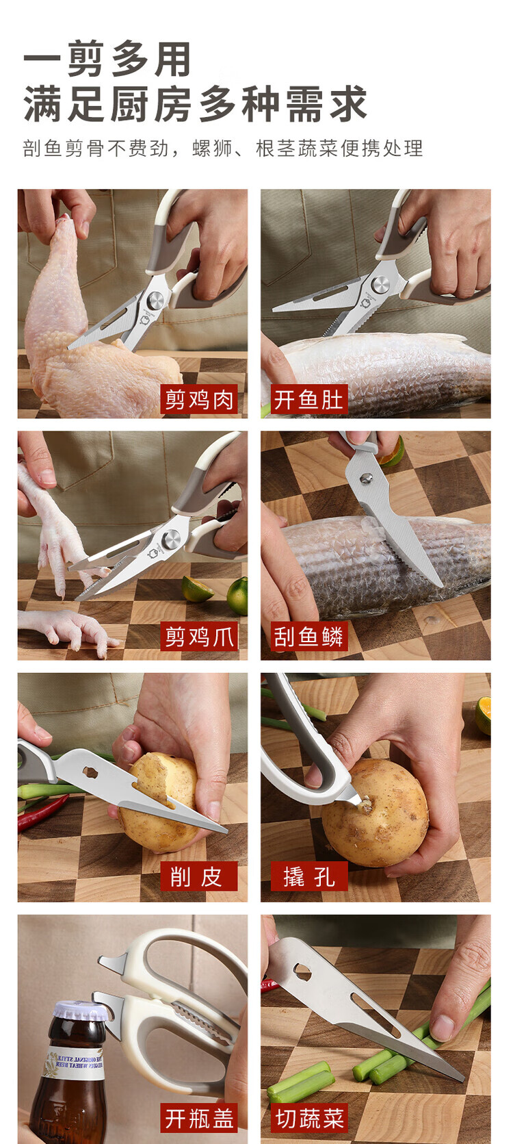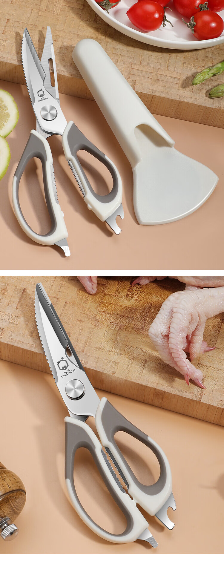 Kitchen scissors, multifunctional scissors, strong chicken bone scissors for kitchen, stainless steel household detachable barbecue food scissors, refrigerator scissors, detachable white gray multifunctional kitchen scissors magnetic knife cover, detachable white multifunctional kitchen scissors