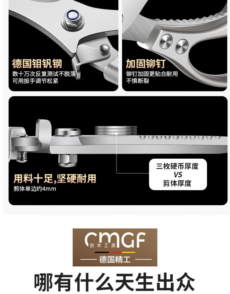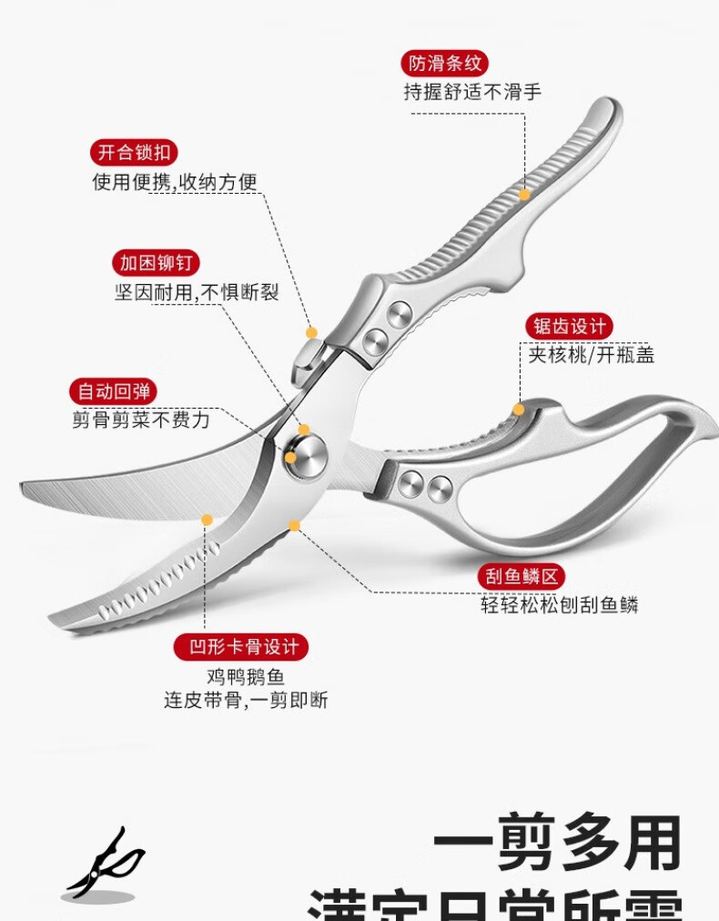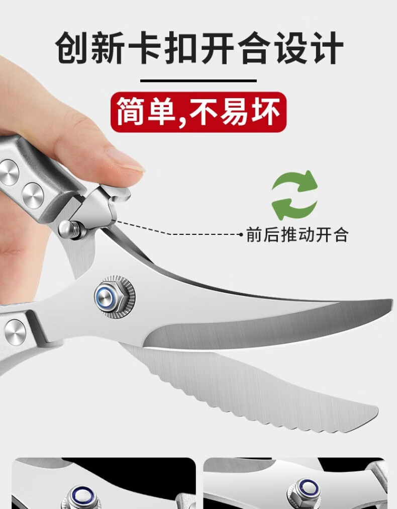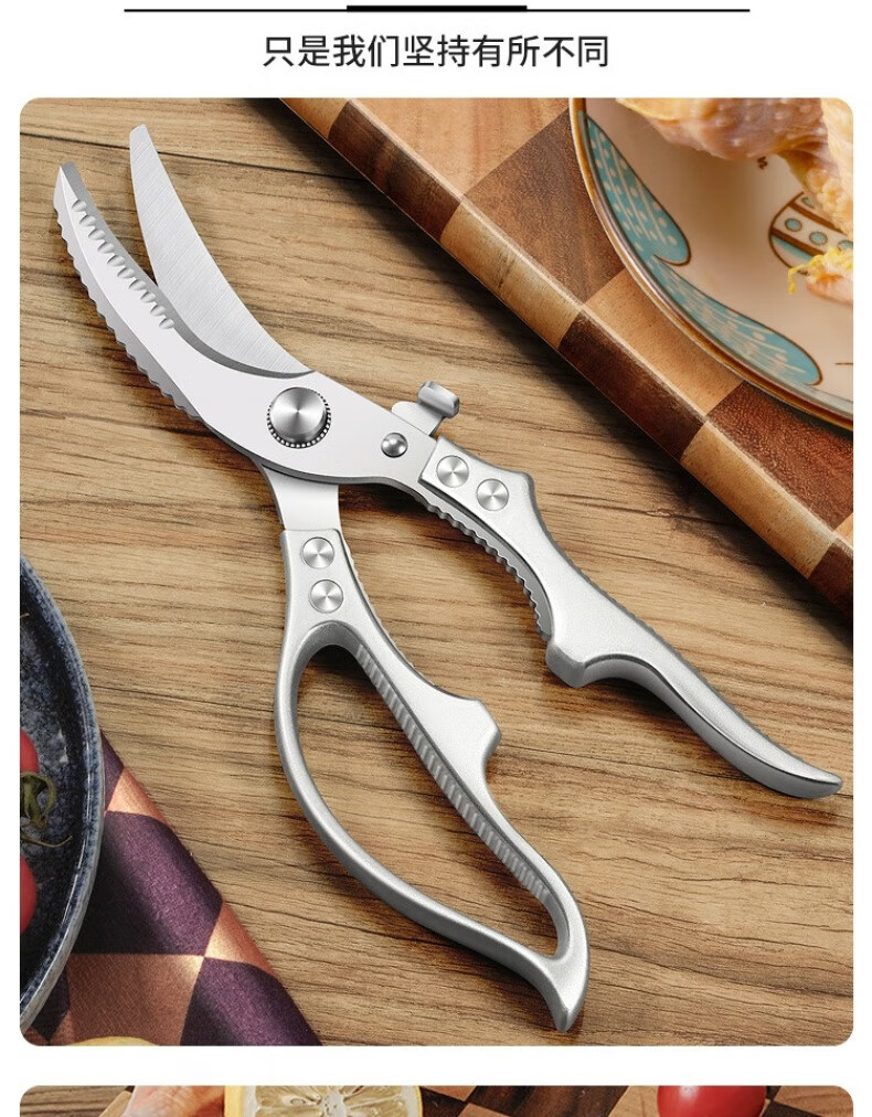 Bangyue Deutsche Seiko-Küchenschere, kraftvolles Schneiden von Hühner-, Enten- und Gänseknochen, multifunktionale Edelstahl-Lebensmittel-Hühnerknochenschere, Lebensmittel-deutsche, leistungsstarke Hühnerknochenschere + Melonenhobel mit flacher Öffnung
