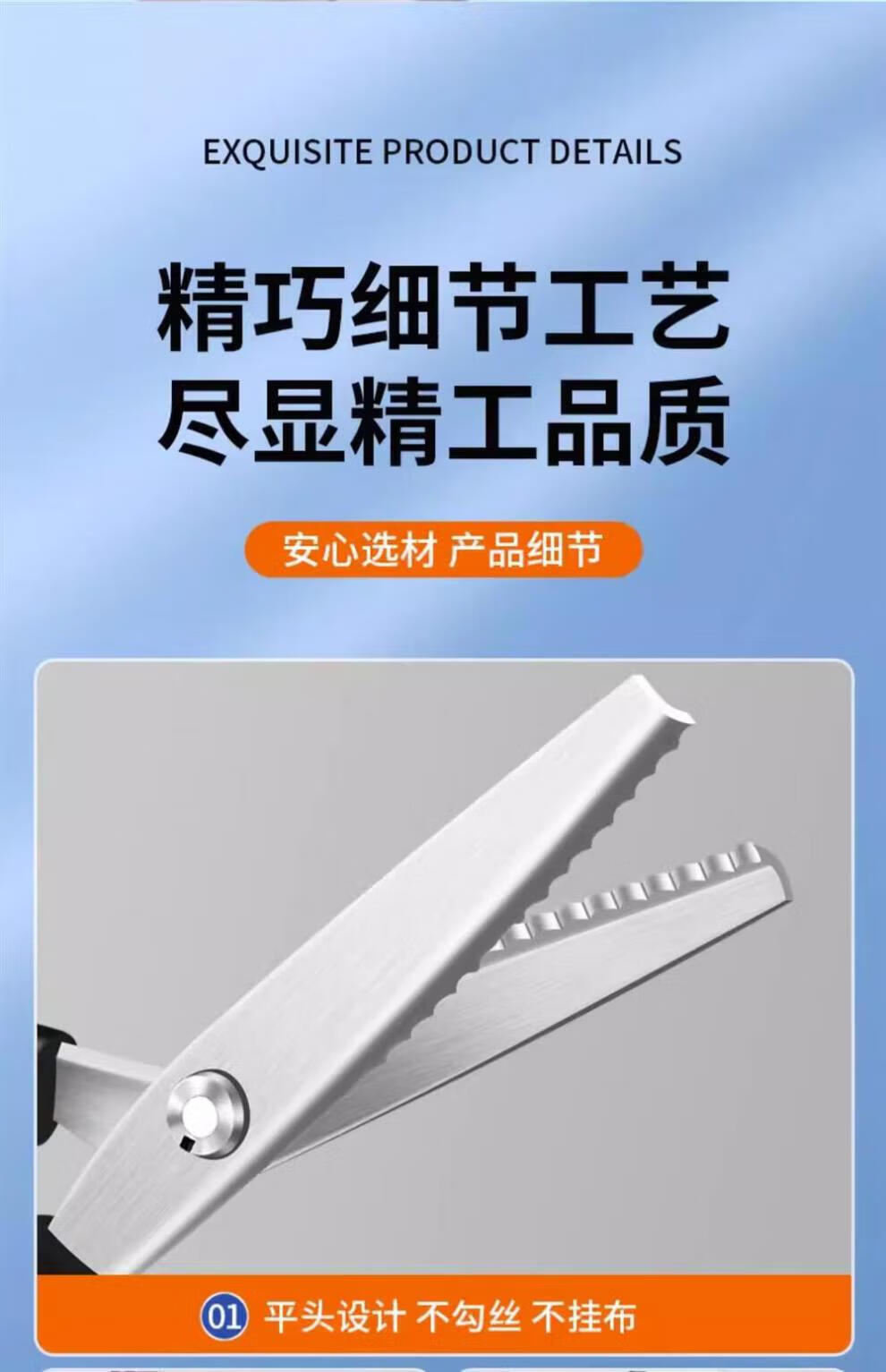 Meschute German lace tailor scissors, special overlocking sawtooth scissors for sewing and cloth cutting, household cloth scissors, stainless steel hand scissors, wavy teeth 7mm, upgraded thickened gift box