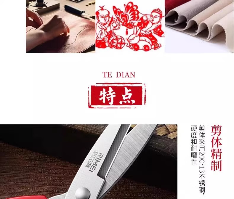 JINDA RIMEI stainless steel art tailoring scissors, manual paper cutting and thread cutting, sharp kitchen scissors for home use, special scissors for sewing丨medium size regular style