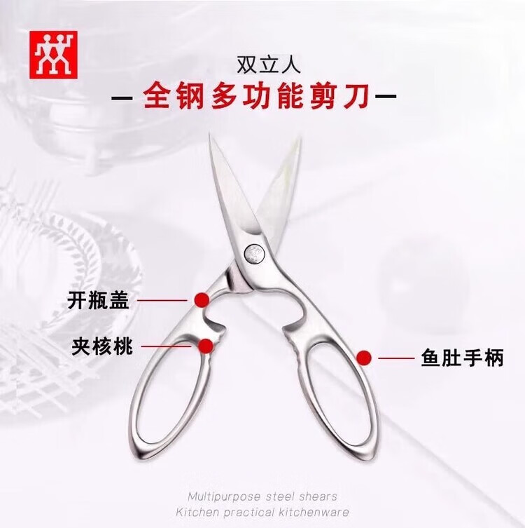 双立人(ZWILLING)德国全钢不锈钢鸡骨禽肉剪刀厨房食物多功能剪厨剪 全钢剪刀