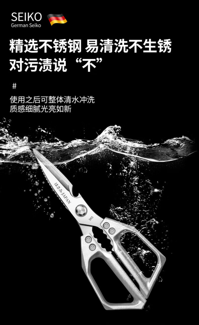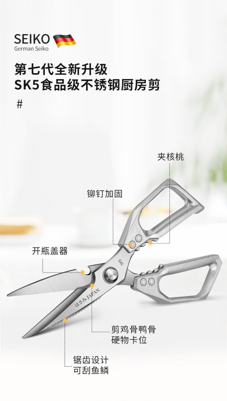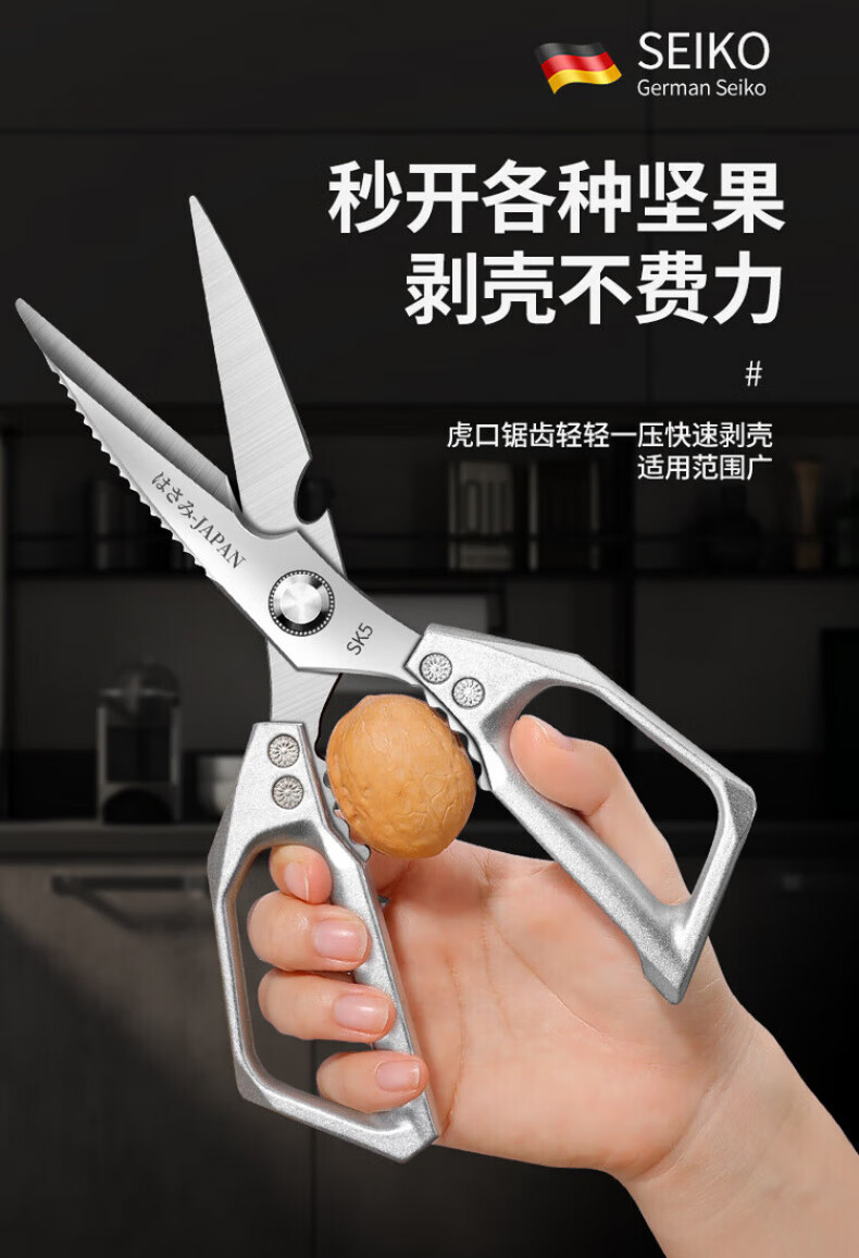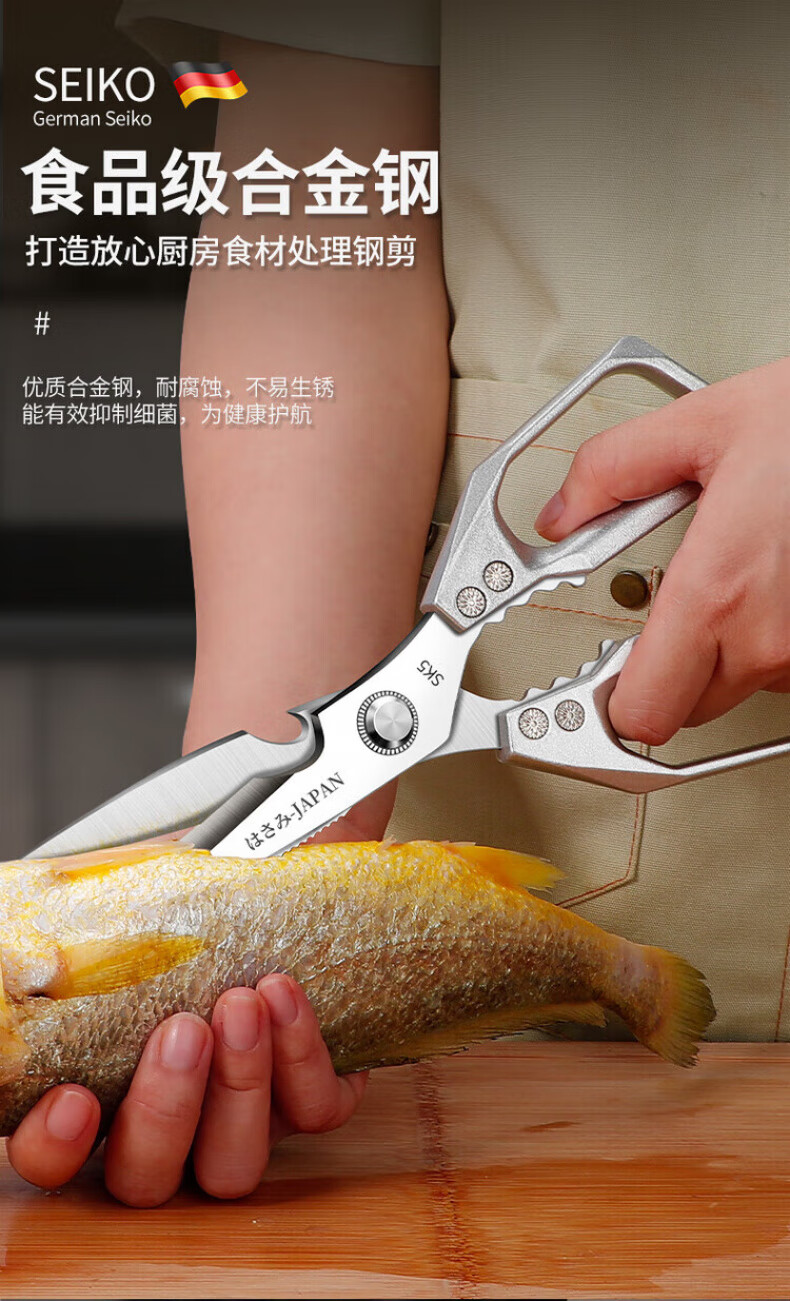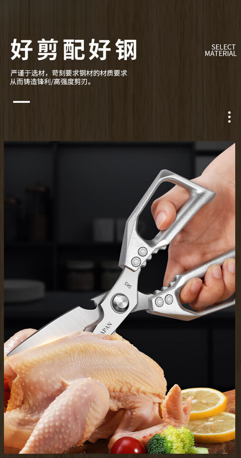 煦凛【德国】厨房剪刀剪骨刀不锈钢多功能剪鸡骨剪鸡鸭鹅剪骨用强力剪 【全新升级单重防锈】SK5银色厨房剪刀