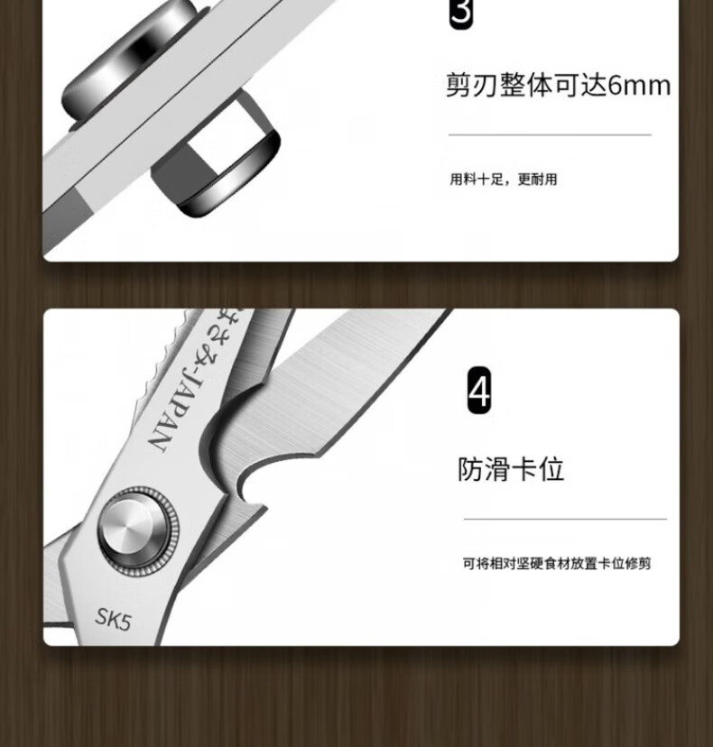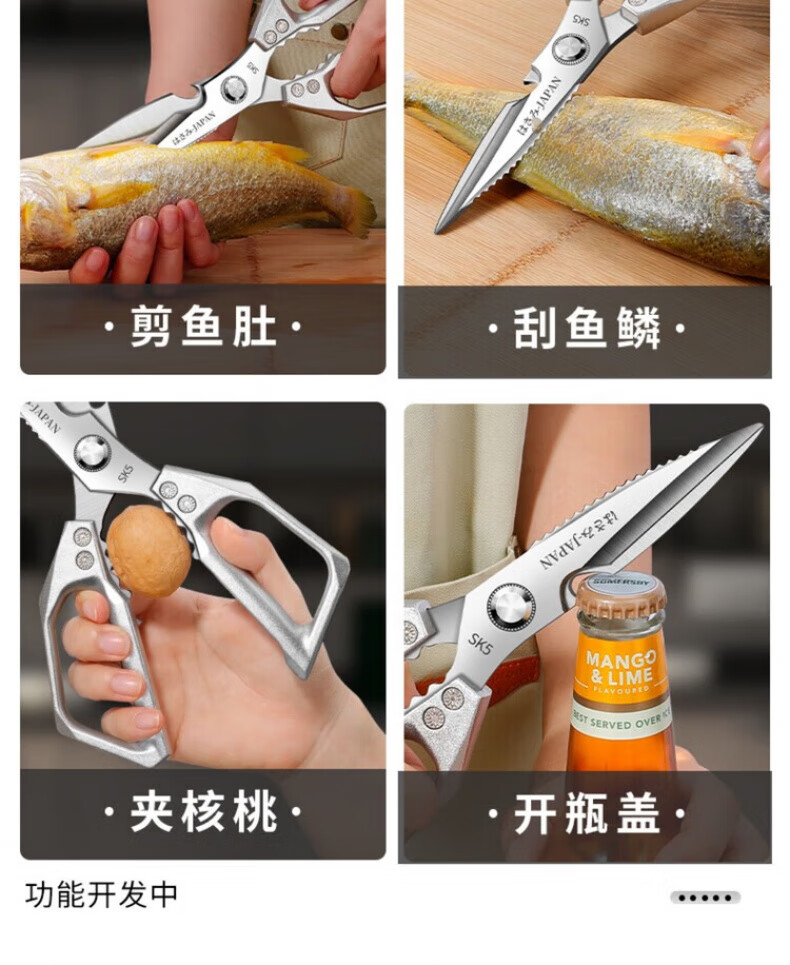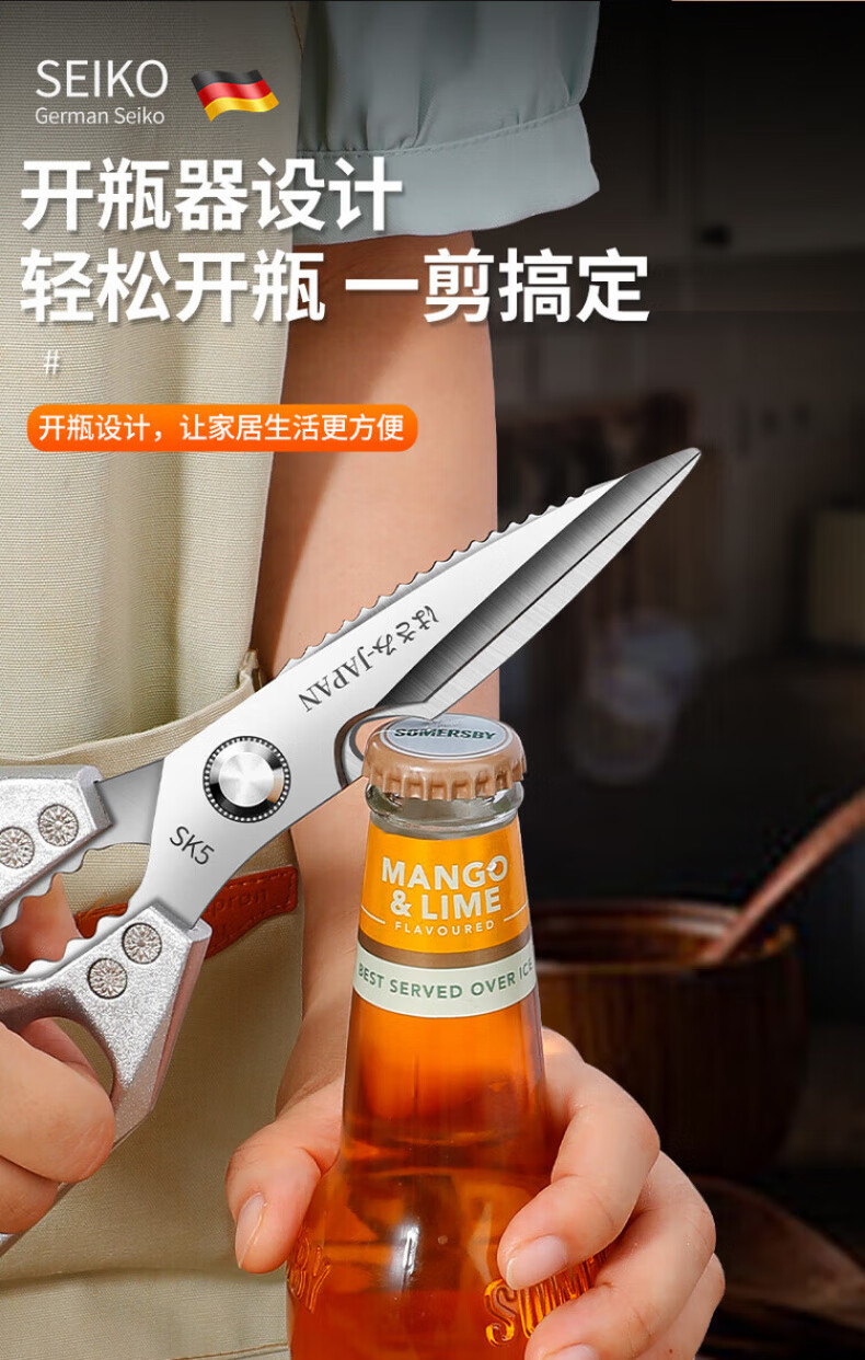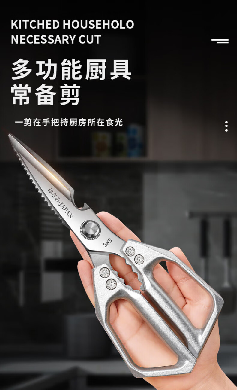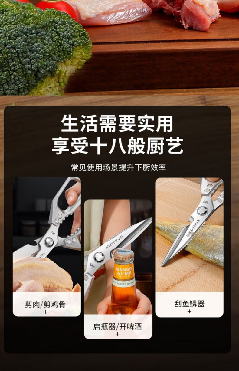 煦凛【德国】厨房剪刀剪骨刀不锈钢多功能剪鸡骨剪鸡鸭鹅剪骨用强力剪 【全新升级单重防锈】SK5银色厨房剪刀