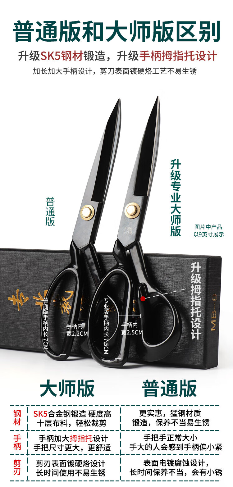 SMVP Japan imported high-quality tailoring scissors for cloth cutting, special sewing scissors for clothing tailoring, sewing scissors for large cutting, high-end real SK5 steel_Master tailoring scissors (10 English U)