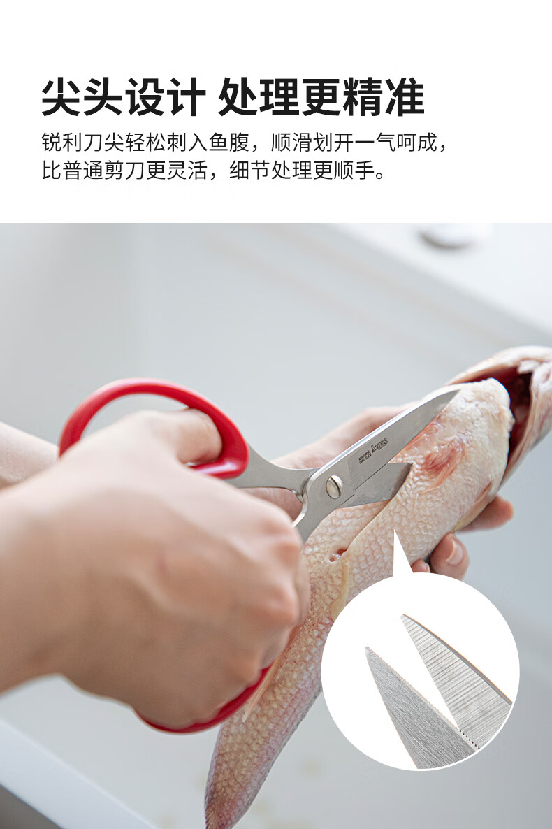 Shuangshan Japan importierte Küchenscheren aus Edelstahl, spitze gezackte Fisch-, Krabben-, Hühnerknochenscheren, multifunktionale Kochscheren, multifunktionale Kochscheren – 19 cm lang, spülmaschinenfest