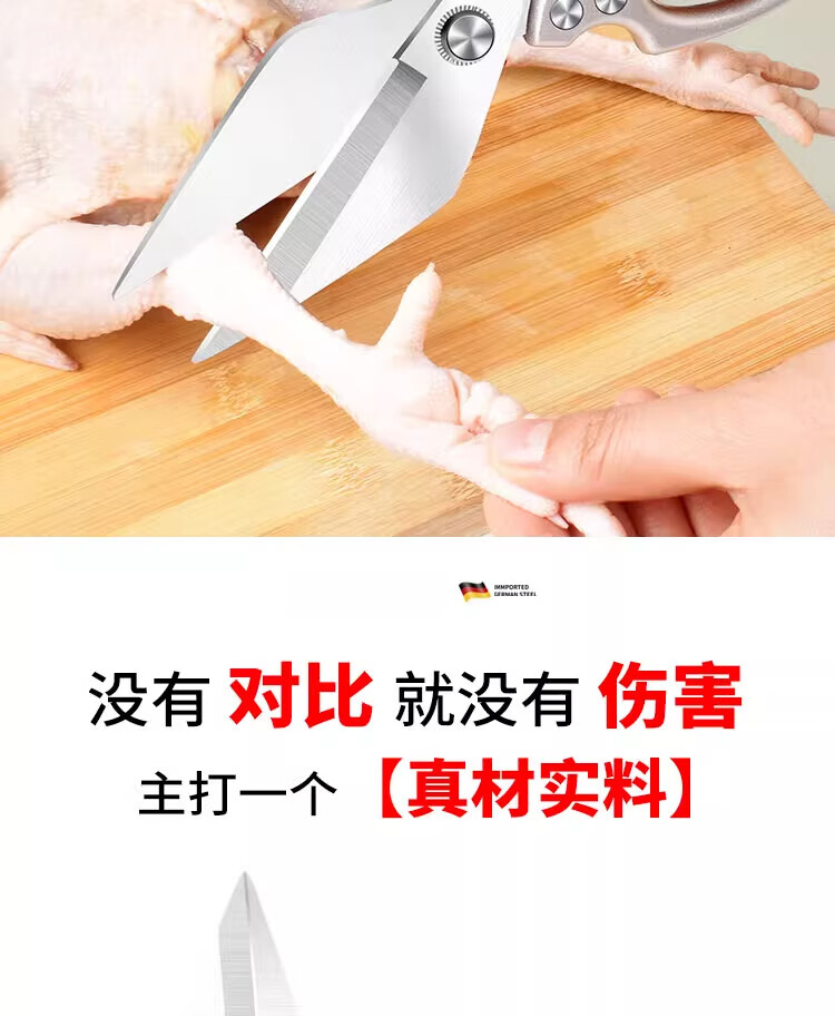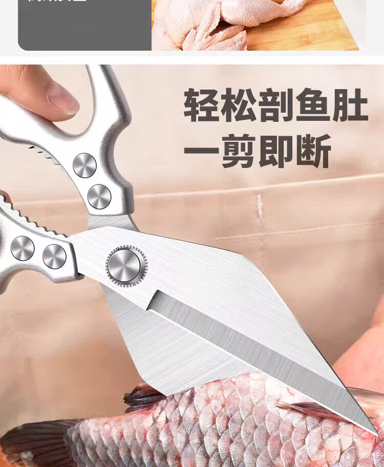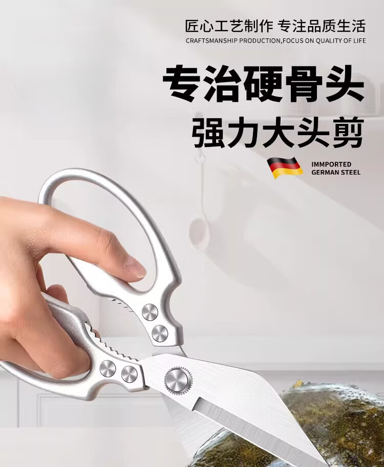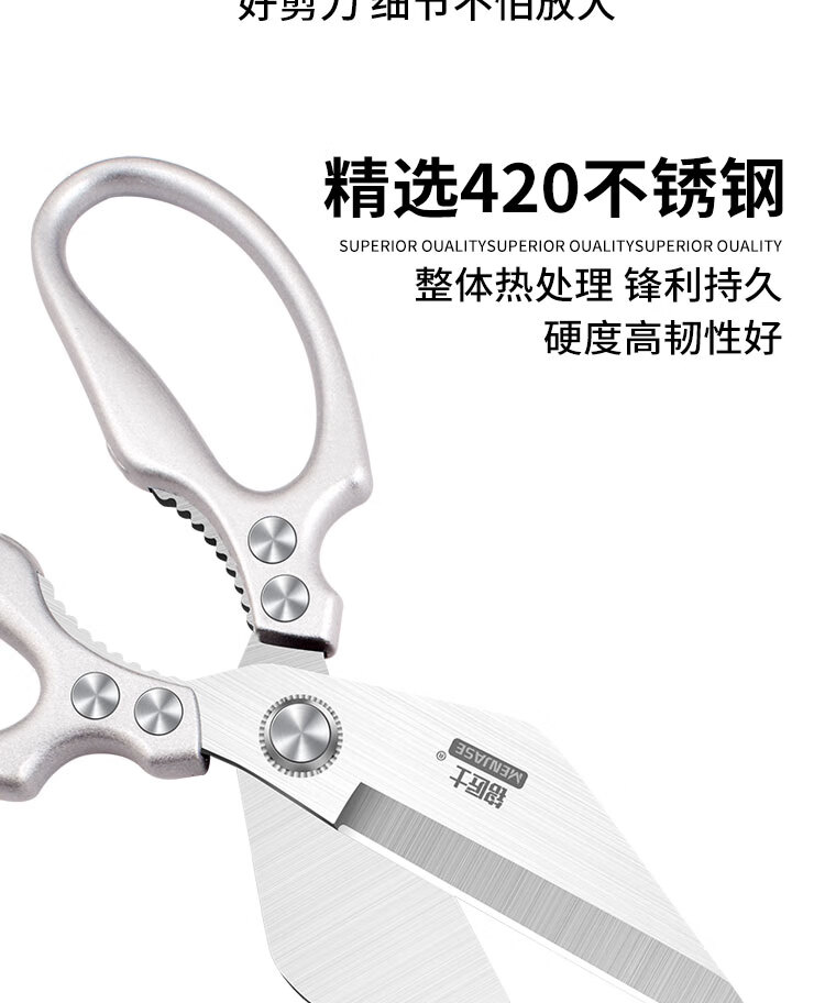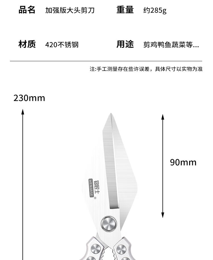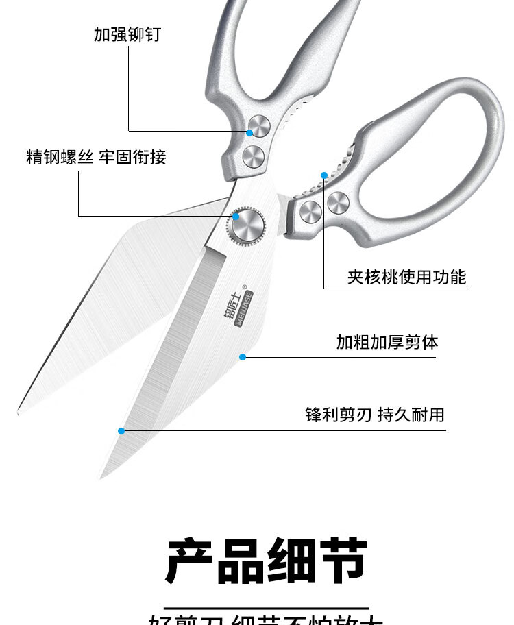 Meishut big head powerful kitchen scissors for home use to cut chicken, duck and goose bones special food scissors barbecue scissors stainless steel scissors silver powerful big head scissors specially for cutting hard bones