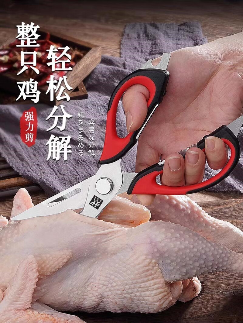 ZWILLING Tijeras de cocina alemanas, multifuncionales y potentes, de acero inoxidable para cortar huesos de pollo y matar pescado, desmontables para uso doméstico, 1 par de tijeras de cocina con tapa de succión magnética