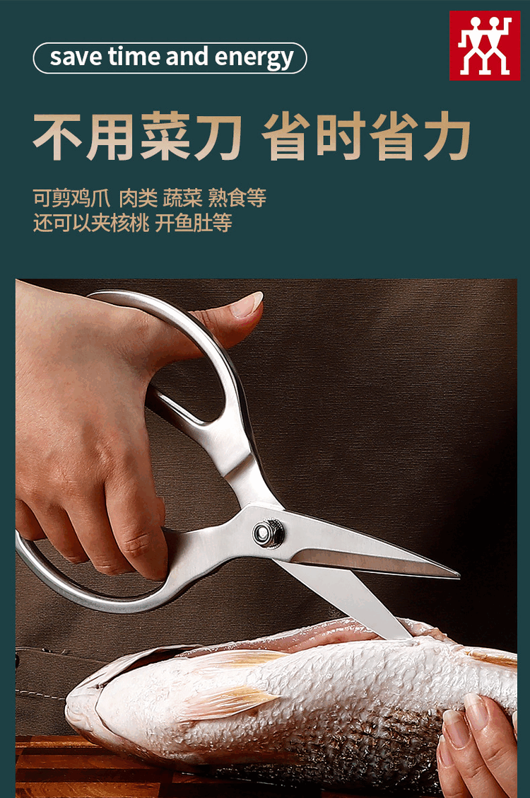 双立人德国厨房剪刀家用不锈钢鸡鸭肉骨头杀鱼多功能专用剪子 不锈钢厨 厨房剪*1
