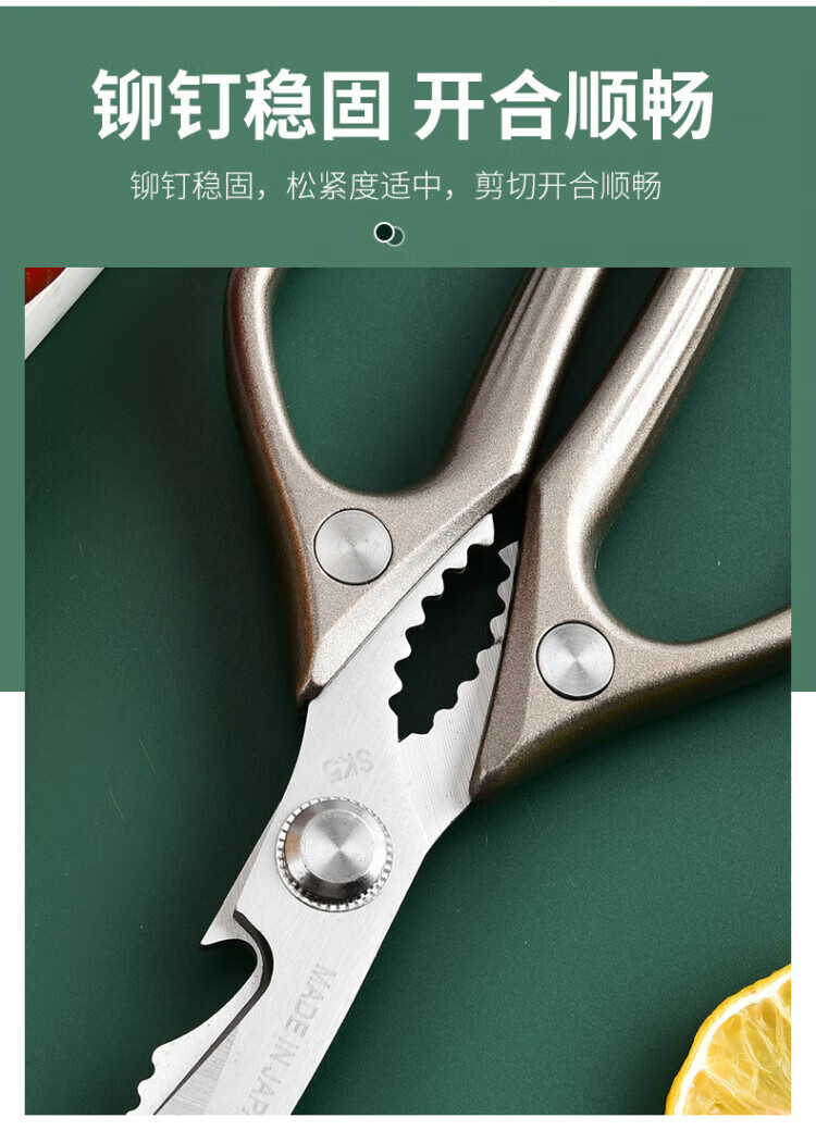 JCZS Deutsche Küchenschere aus Edelstahl, multifunktional, leistungsstarke Lebensmittelschere, Haushalt, Schneiden harter Knochen, spezielle Hühnerknochenschere, importierte Küchenschere aus Edelstahl für Hühnerknochen – Arbeitsersparnis