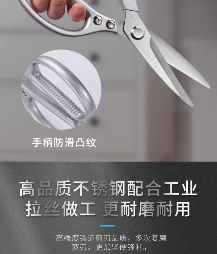 JCZS德国品牌剪刀厨房多功能不锈钢食物剪家用强力剪鸡鸭鹅骨头专用剪 升级款不锈钢强力厨房剪