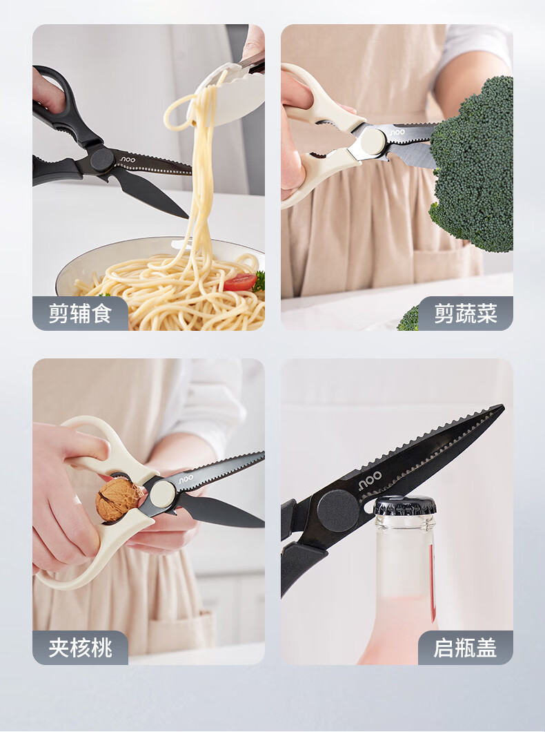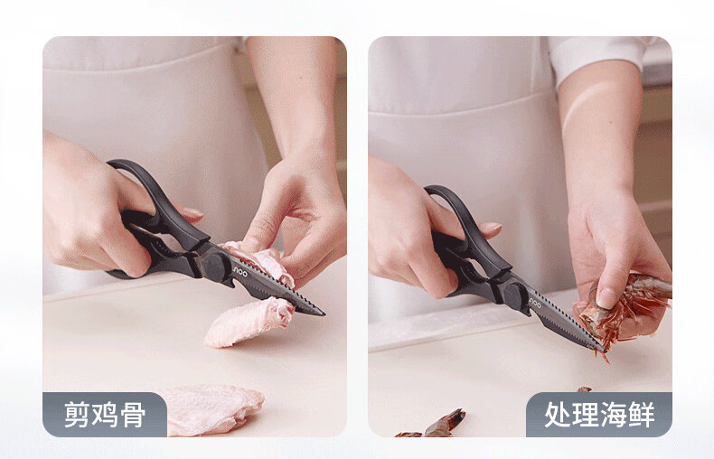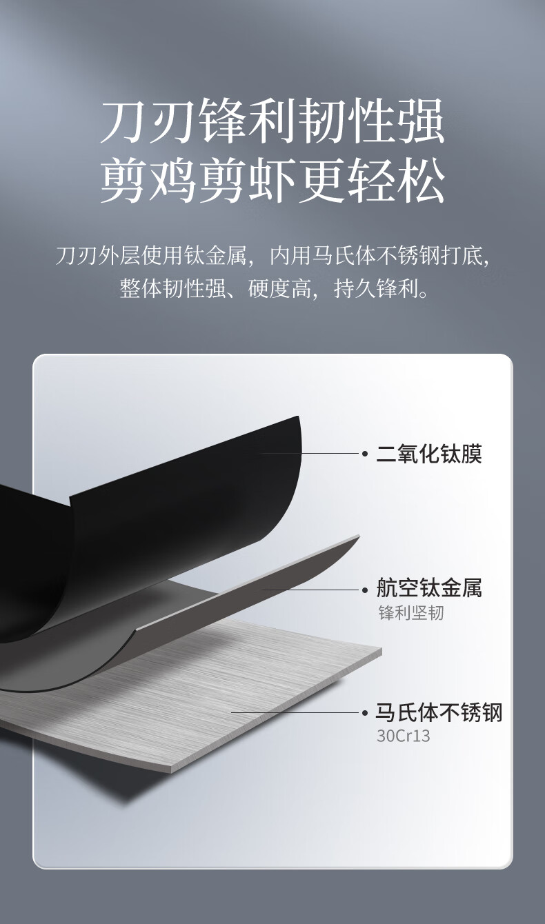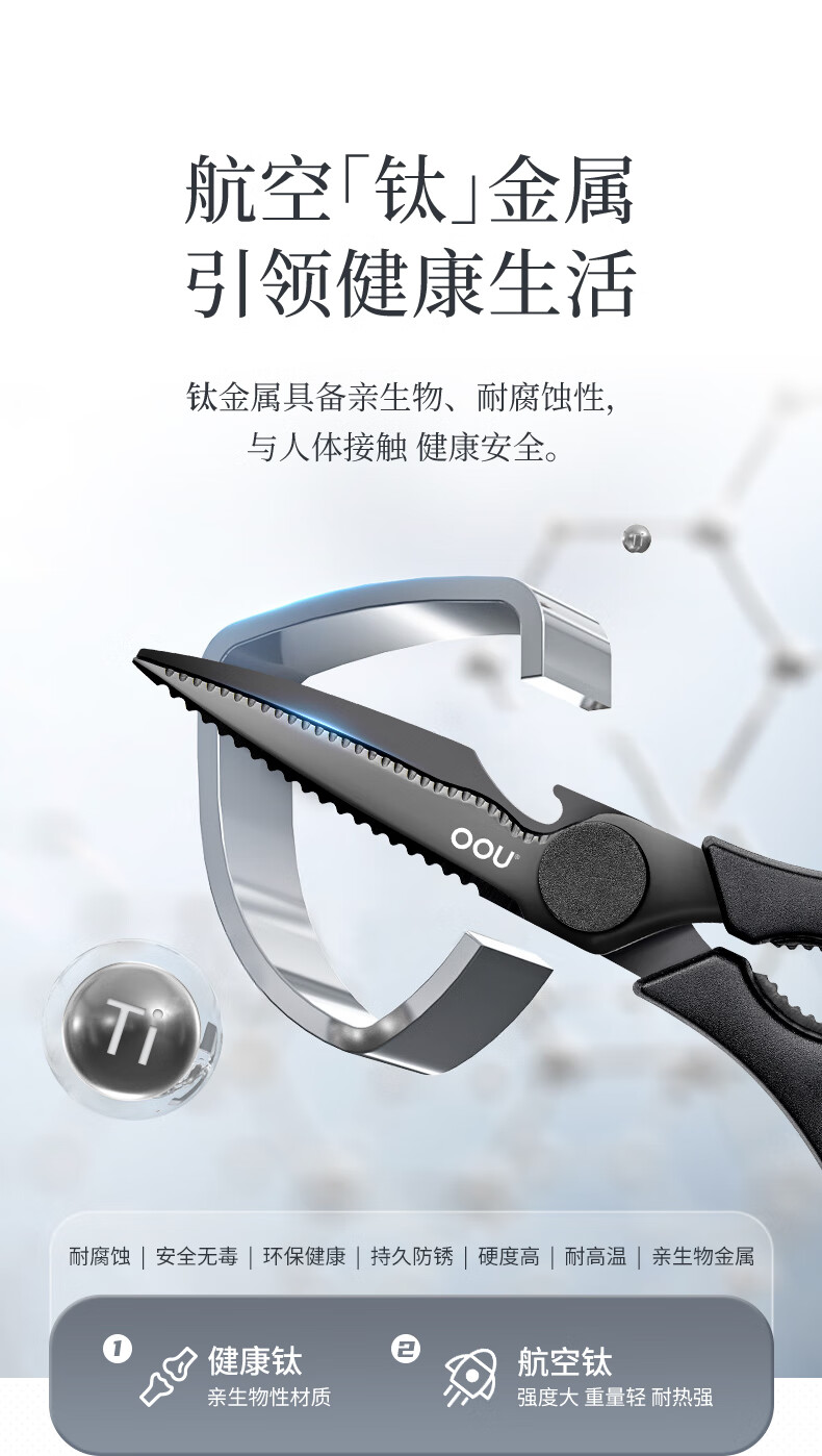 OOU Titanium Scissors Multifunctional Stainless Steel Powerful Scissors Home Kitchen Scissors Food Fish Killing Barbecue Tool Black