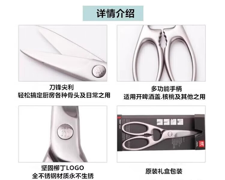 ZWILLING German all-steel stainless steel chicken bone and poultry scissors kitchen food multi-functional scissors kitchen scissors all-steel scissors