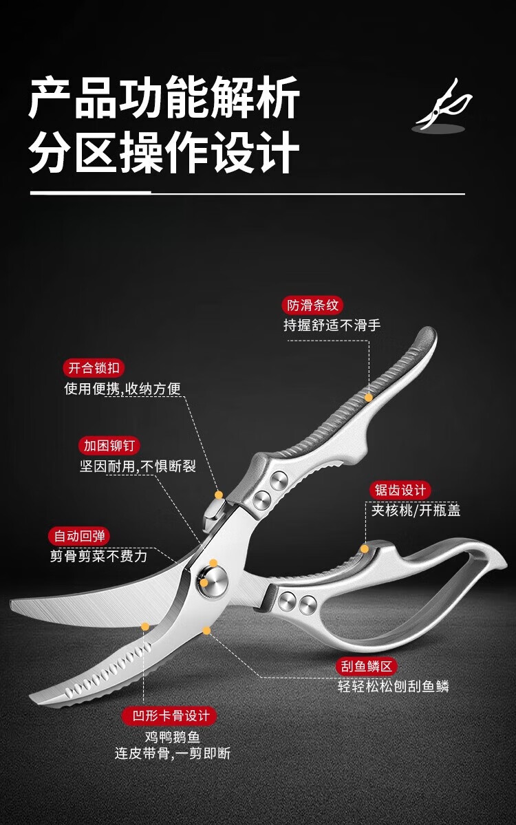 SAWAAG Deutschland Schere für die Küche, Knochenschere, Feinkost, Edelstahl, Lebensmittelqualität, rostfrei, vielseitig einsetzbar, abnehmbare Küchenschere, starke Hühnerknochenschere, 2 Stück, hohe Härte, scharf, arbeitssparend und langlebig
