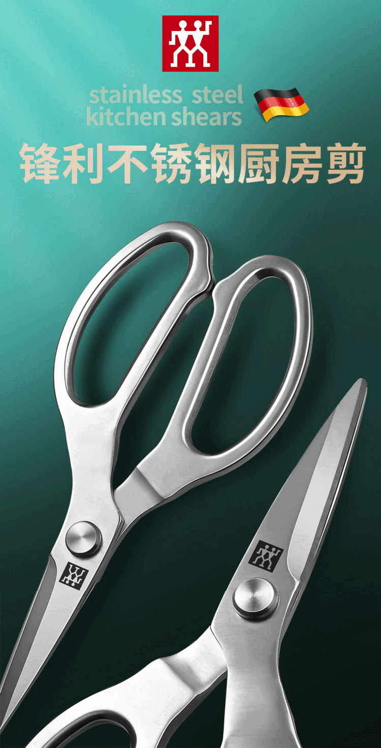 ZWILLING Deutsche Küchenschere aus Edelstahl, Haushaltsschere, leistungsstarke Hühnerknochen-Lebensmittelschere, kommerzielle Grillschere, Edelstahlschere, multifunktional, 1 Paar