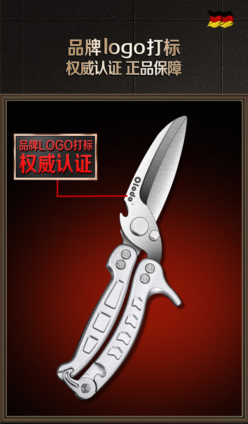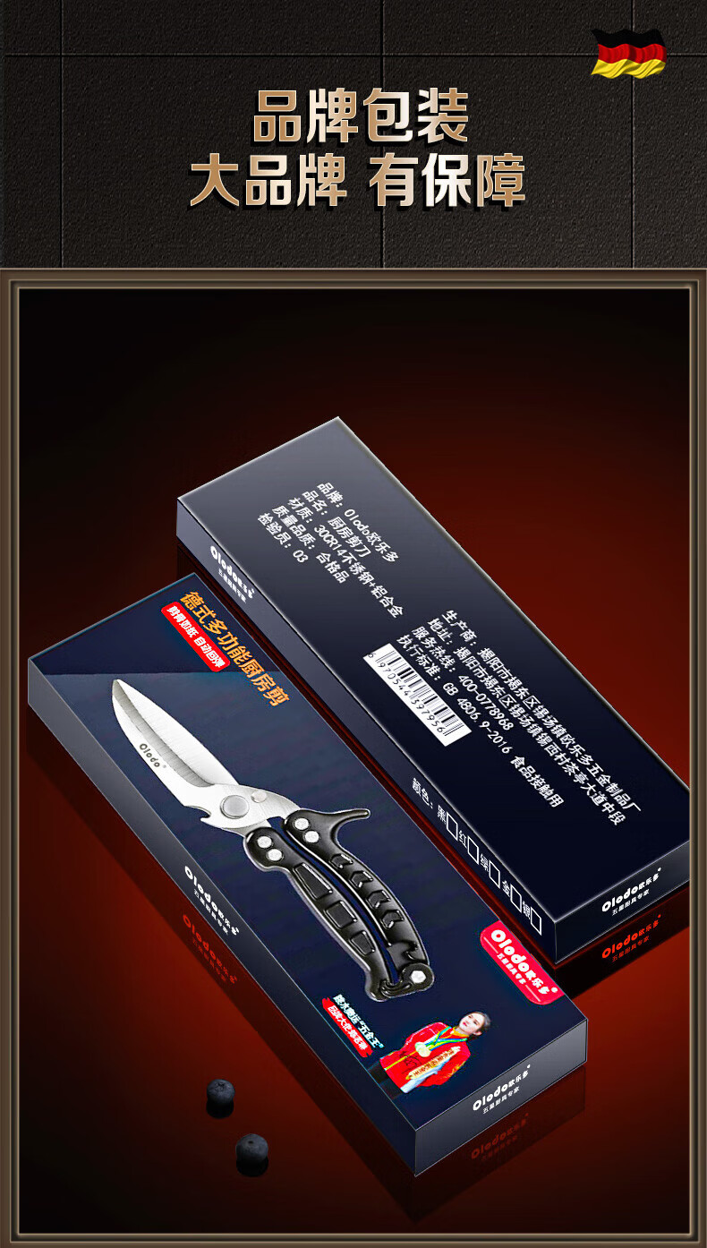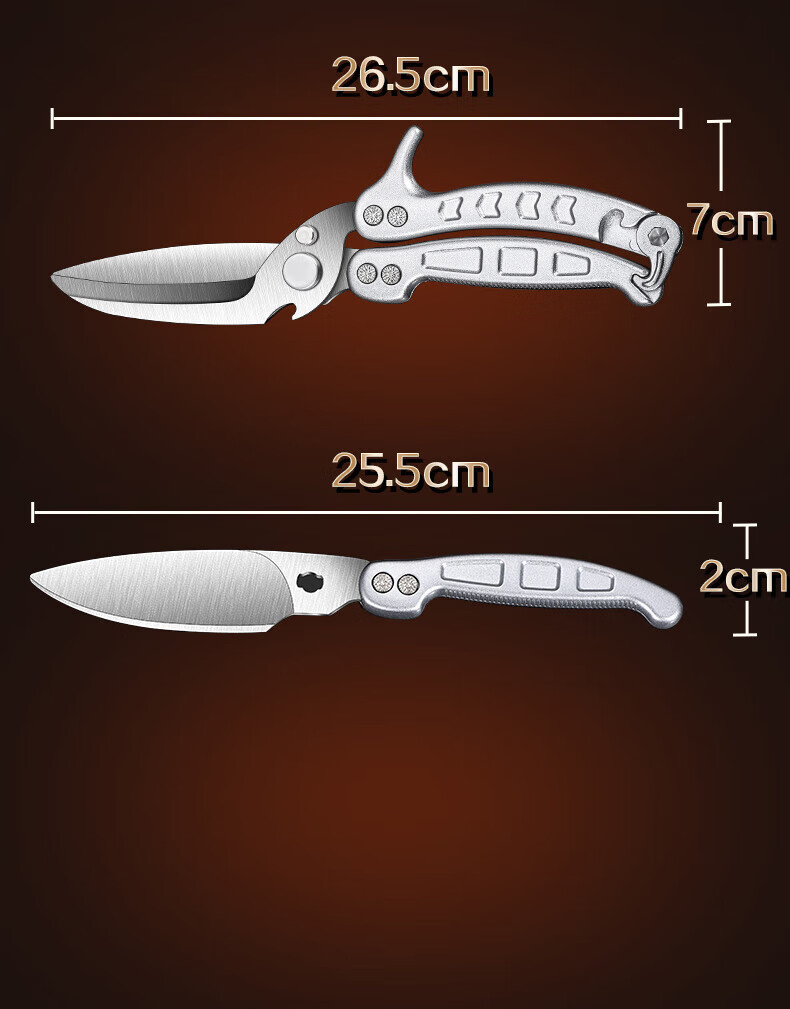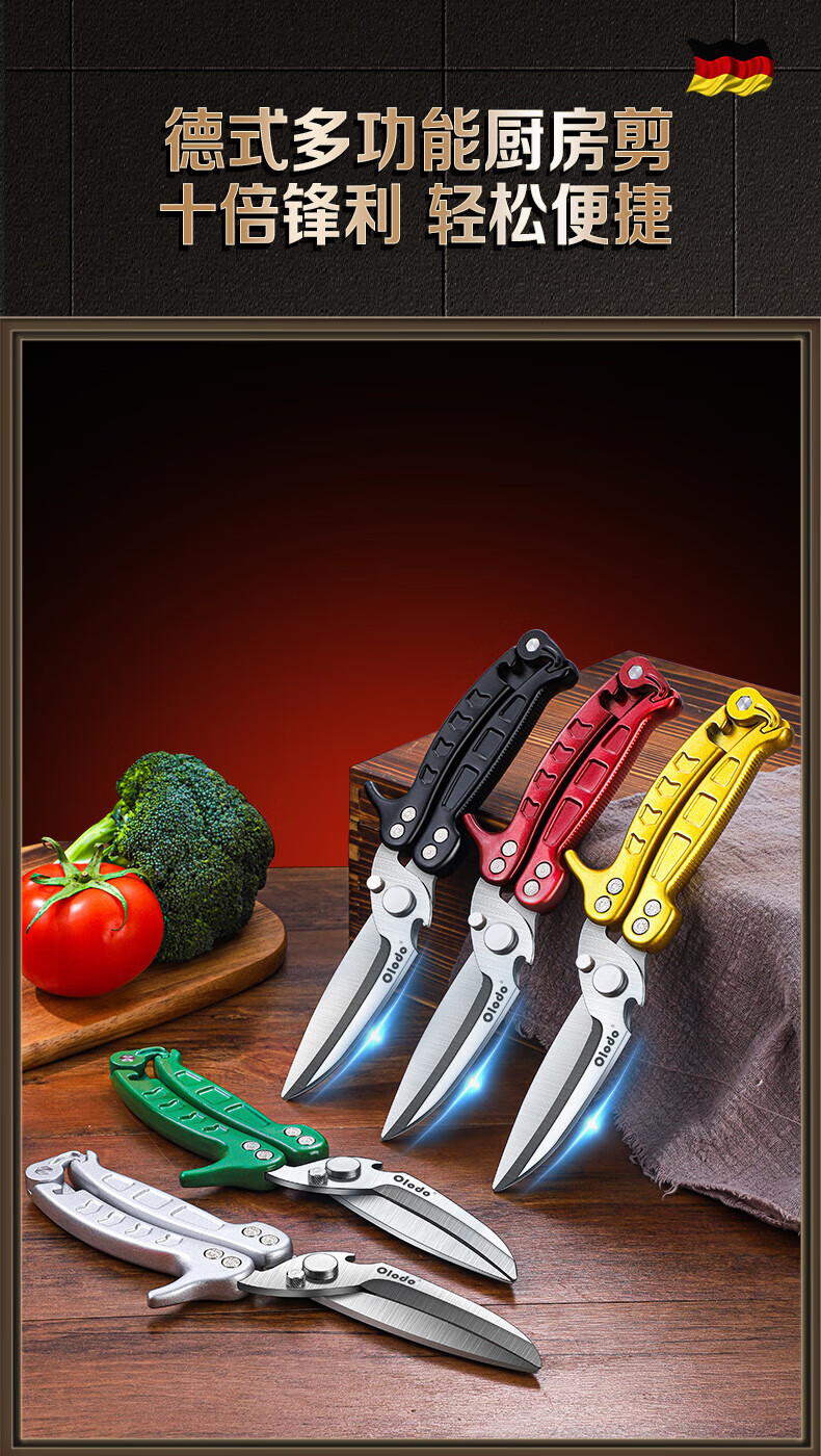Olodo leistungsstarke Küchenschere, Hühnerknochenschere, Haushaltsküchenschere, Edelstahlschere, Grillschere, Knochenschere, natürliches Silber, geschnittene Knochen + geschnittene Früchte + offene Flaschenverschlüsse