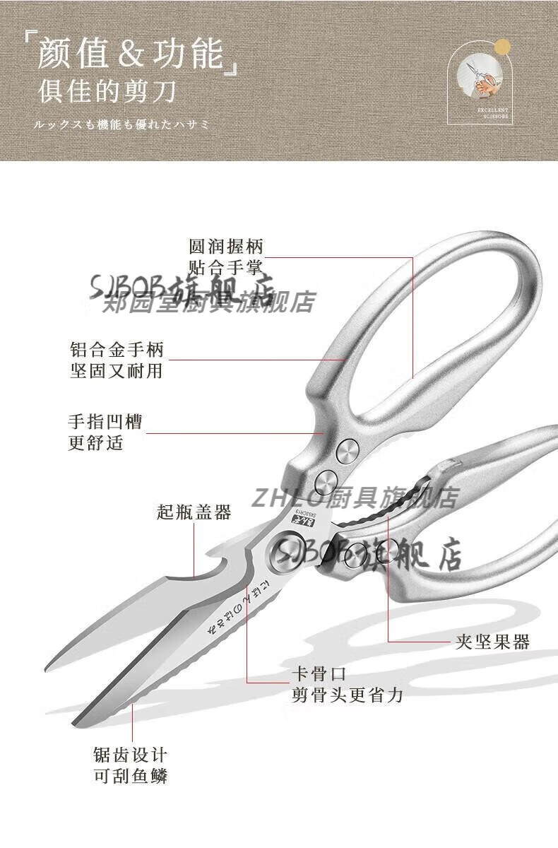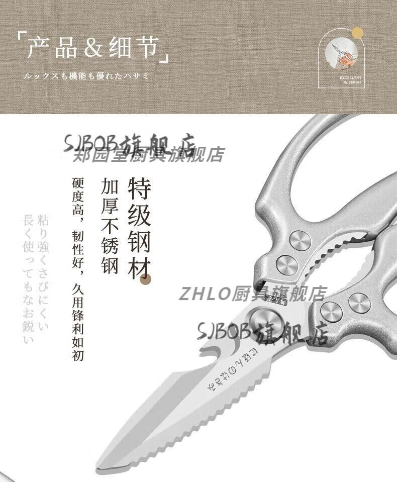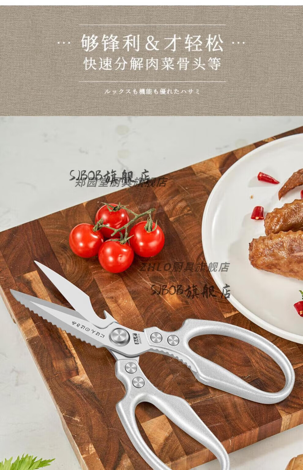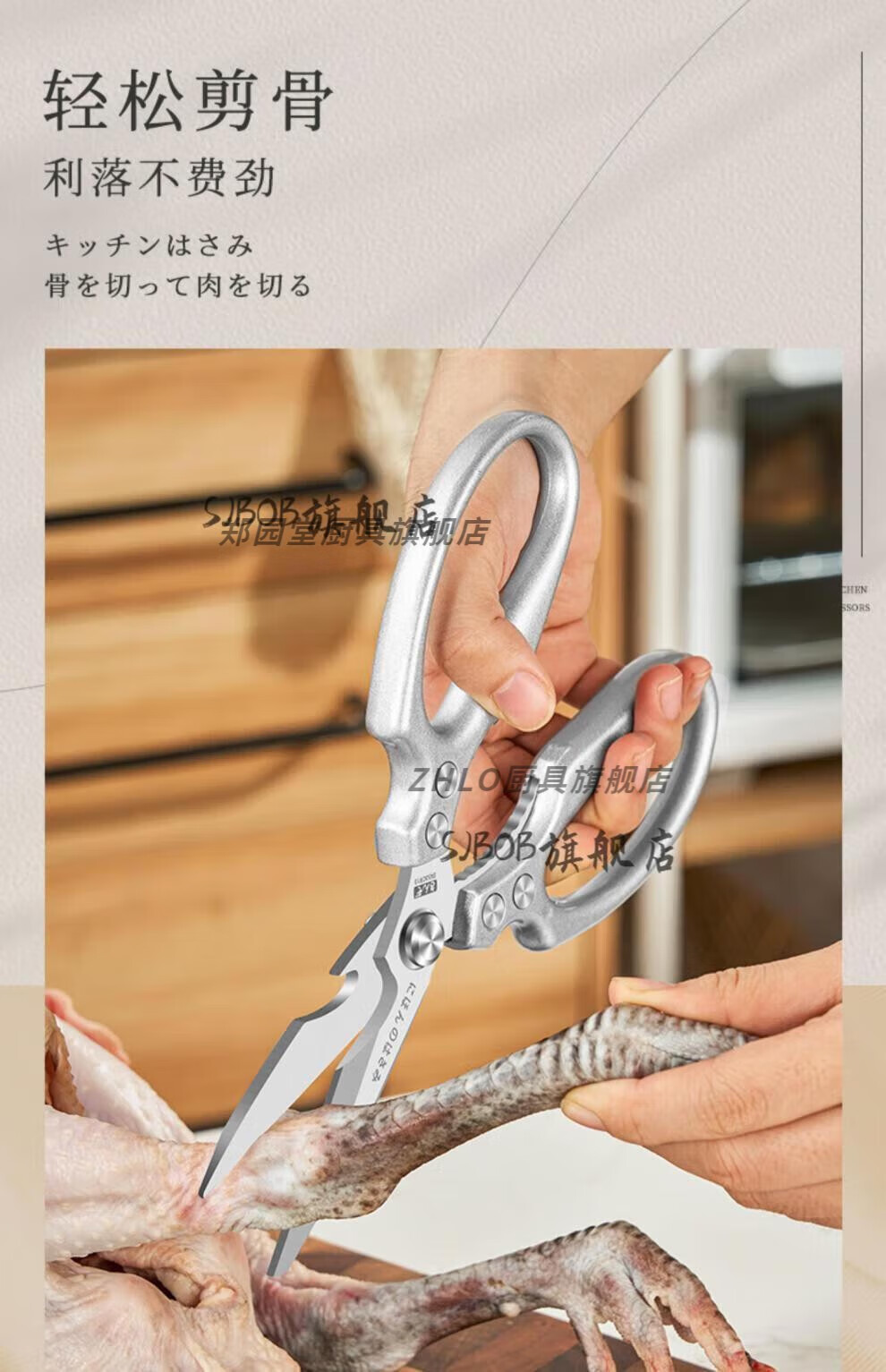 ZHIO kitchen scissors imported from Japan, stainless steel strong cutter for chicken, duck and goose bones, household barbecue and fish killing multi-functional scissors, two purple and pink scissors for children