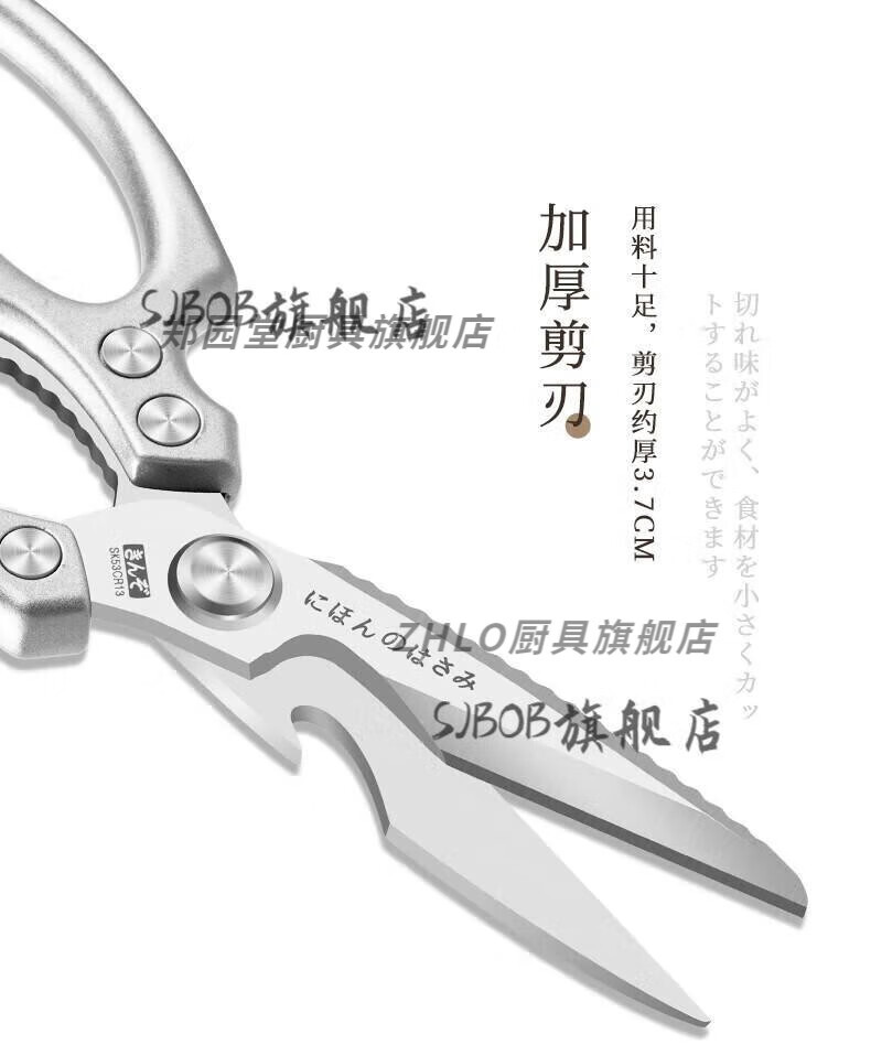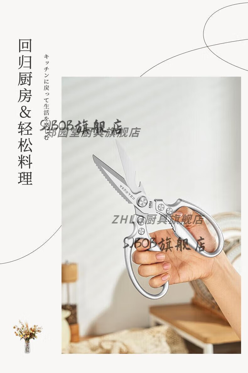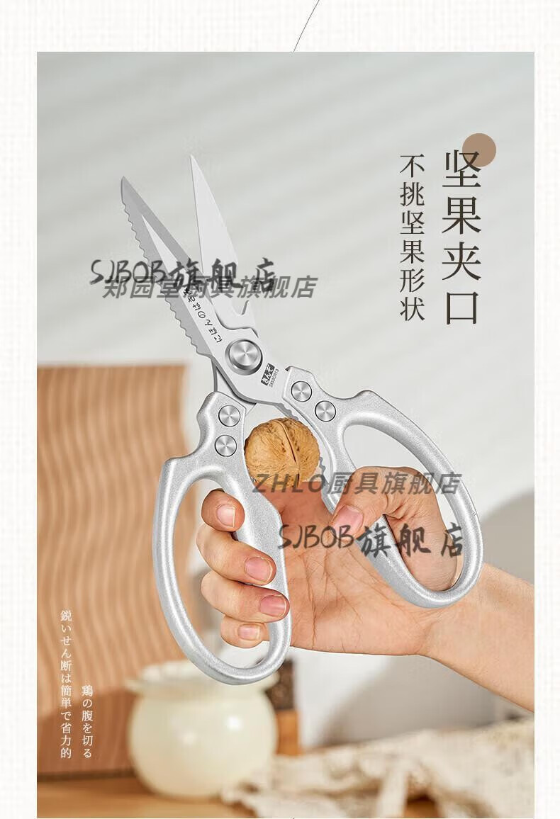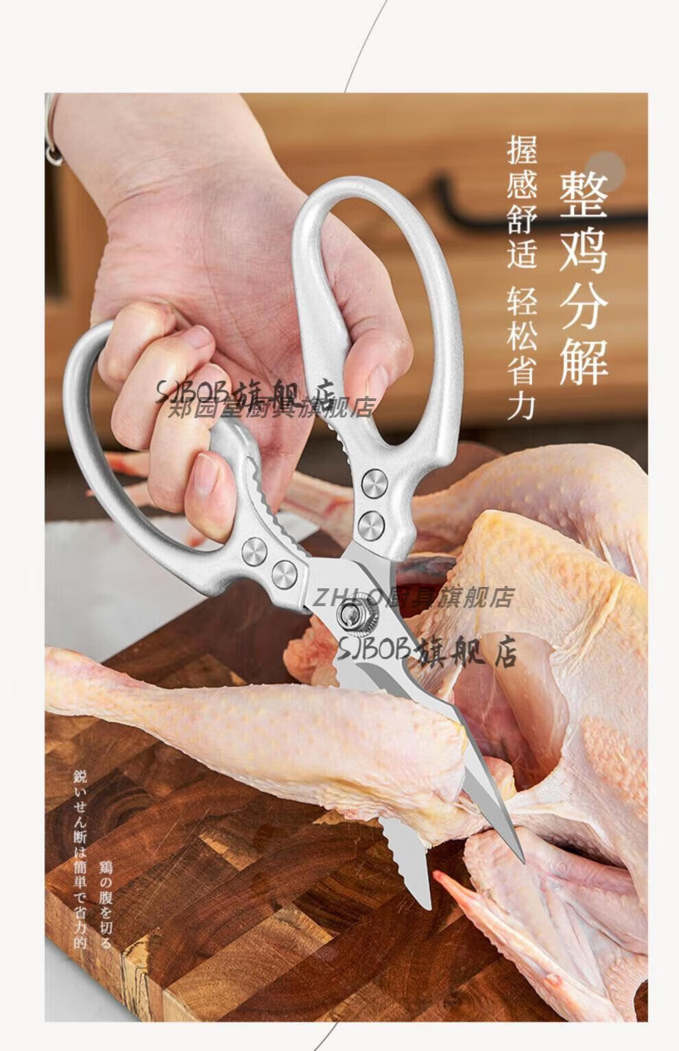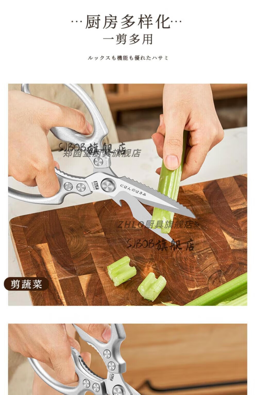 ZHIO kitchen scissors imported from Japan, stainless steel strong cutter for chicken, duck and goose bones, household barbecue and fish killing multi-functional scissors, two purple and pink scissors for children
