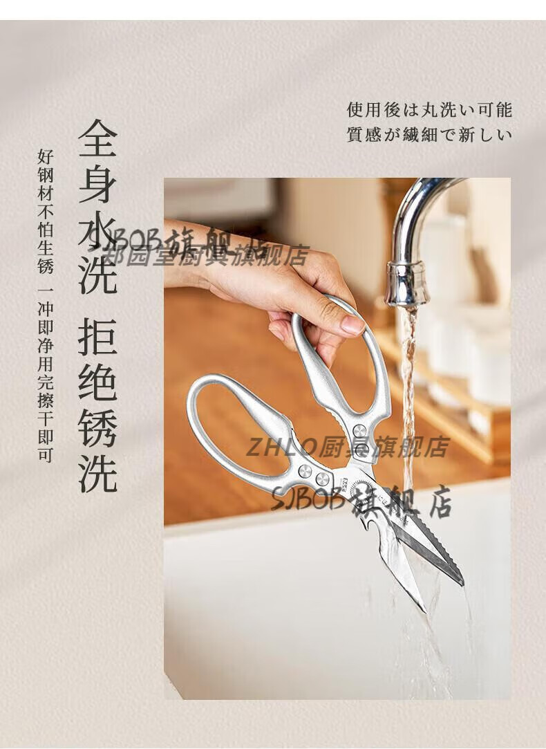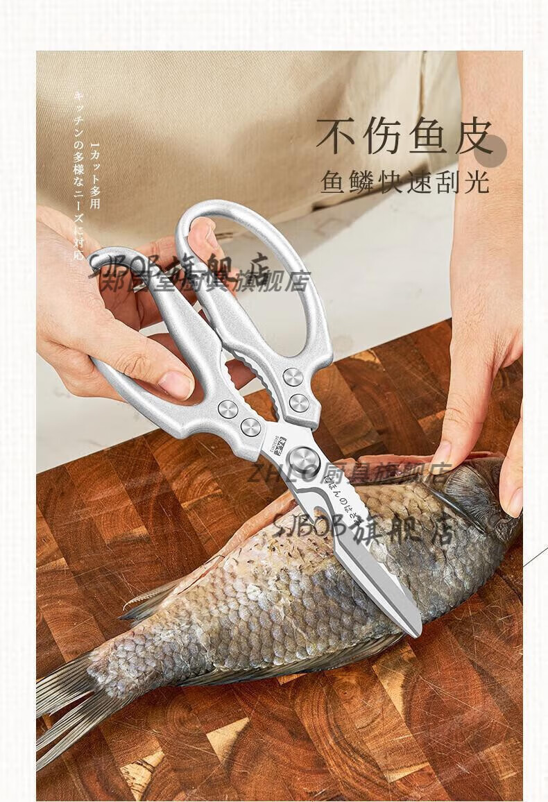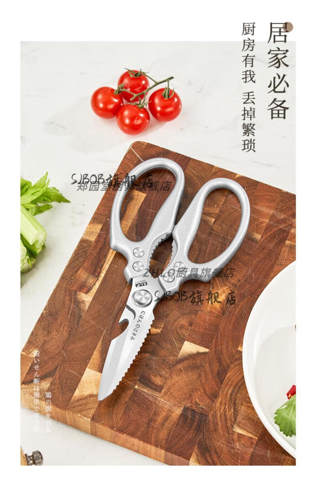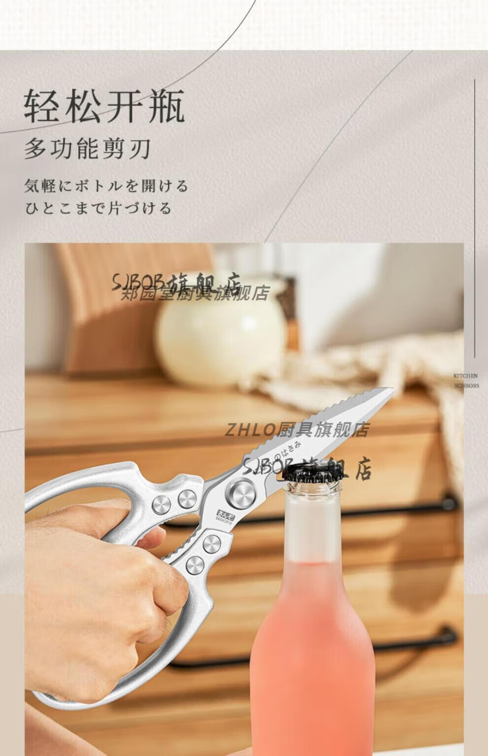 ZHIO kitchen scissors imported from Japan, stainless steel strong cutter for chicken, duck and goose bones, household barbecue and fish killing multi-functional scissors, two purple and pink scissors for children