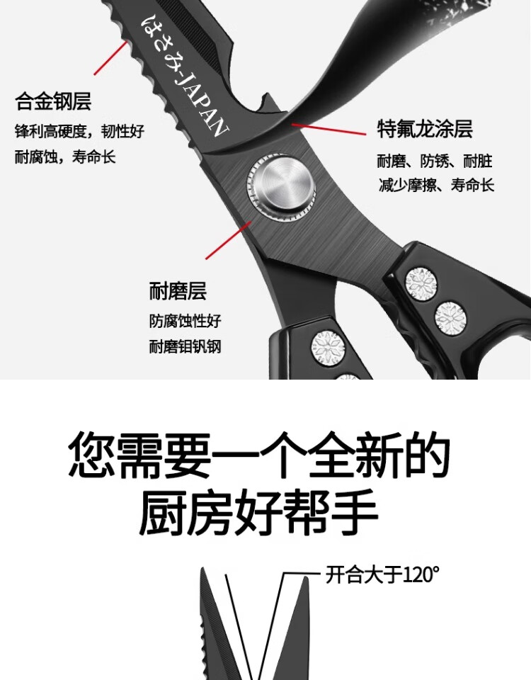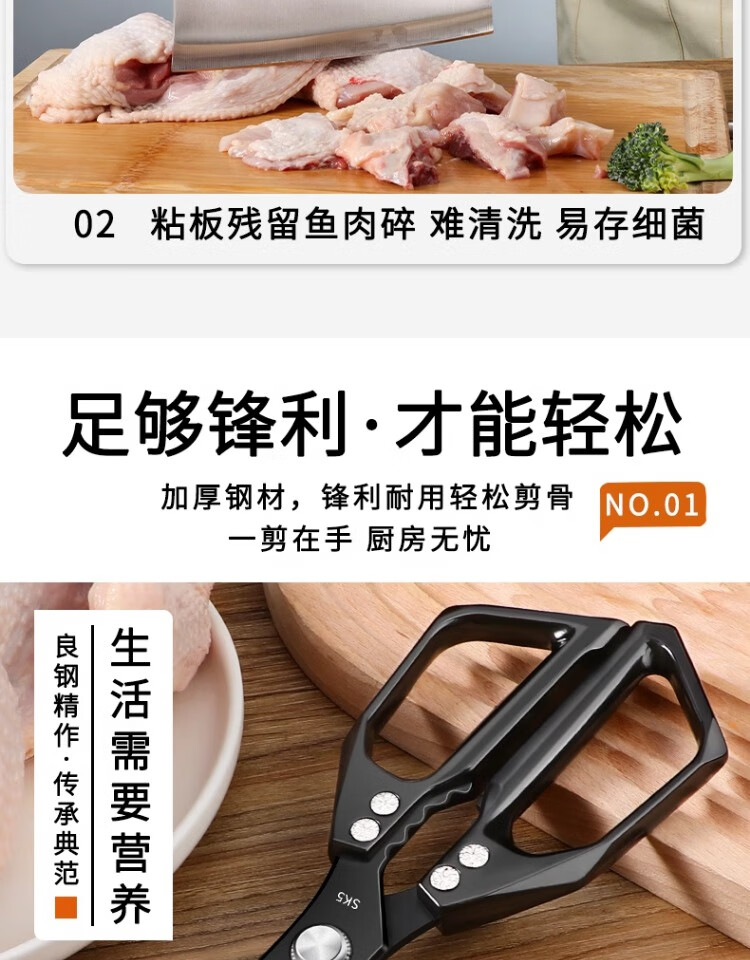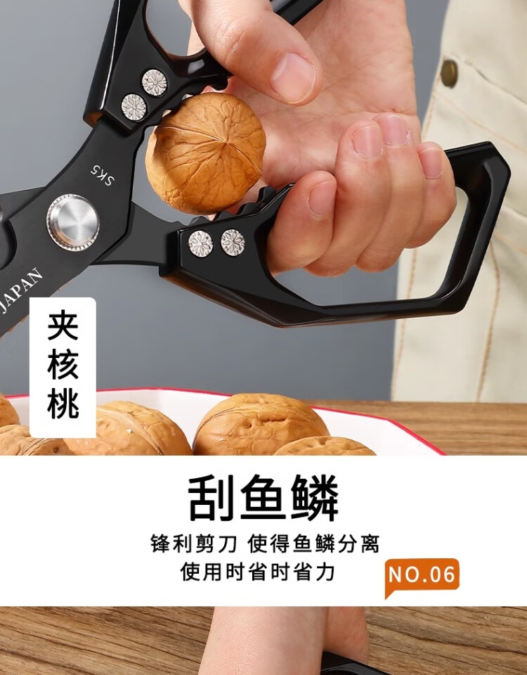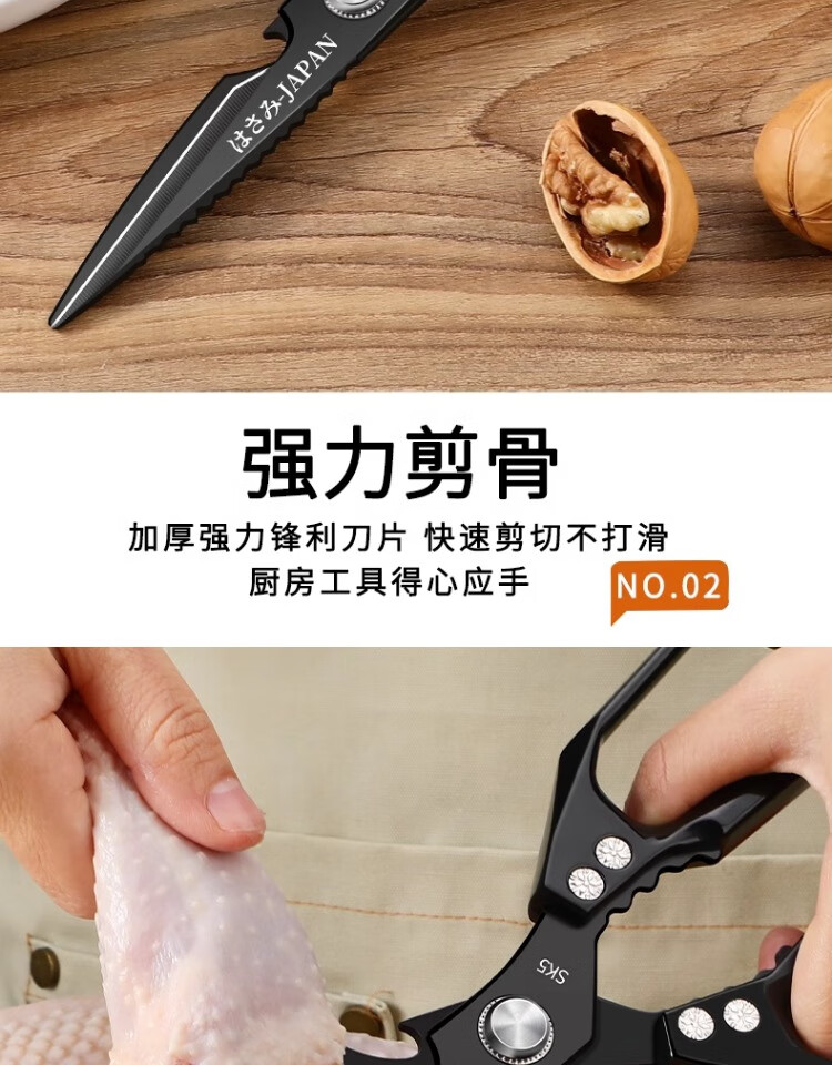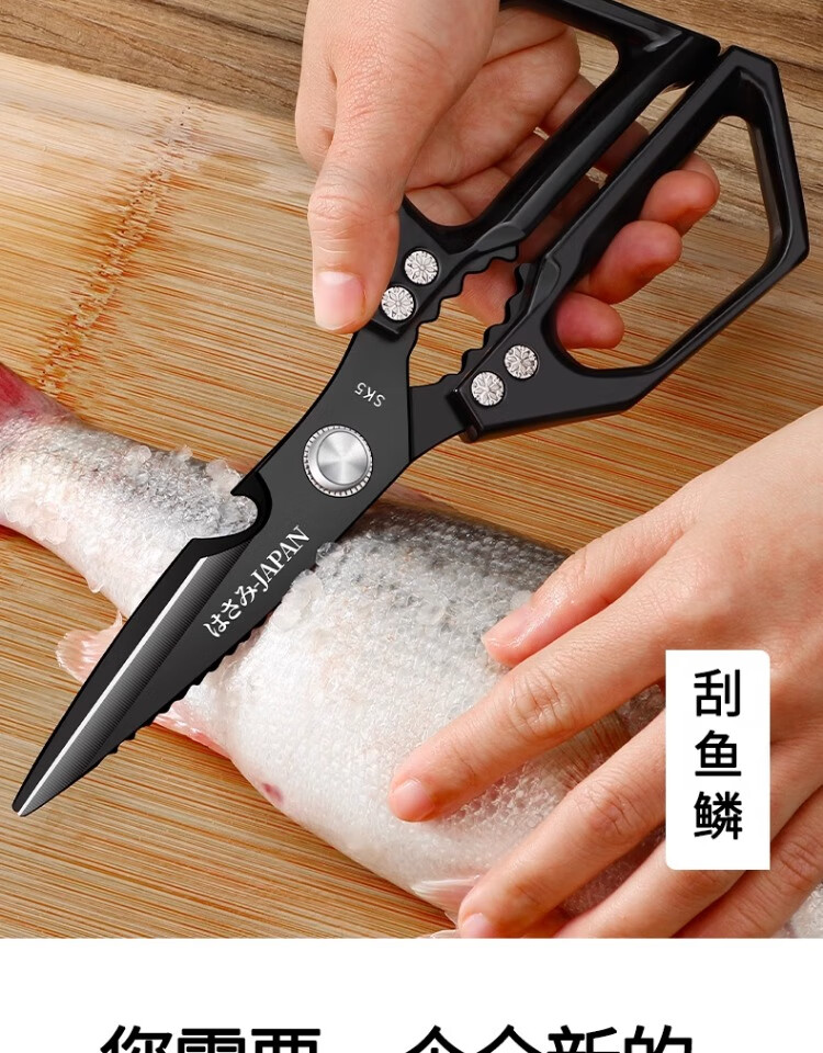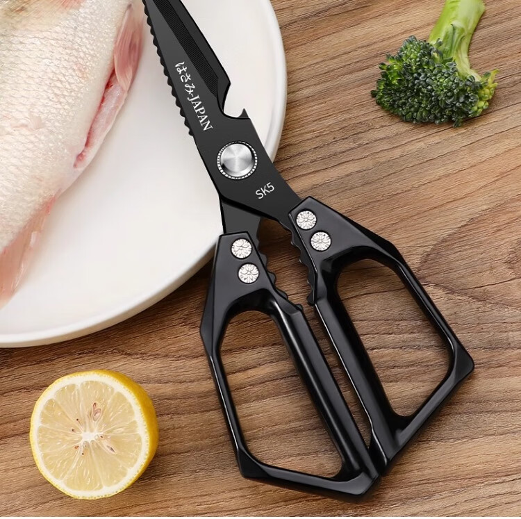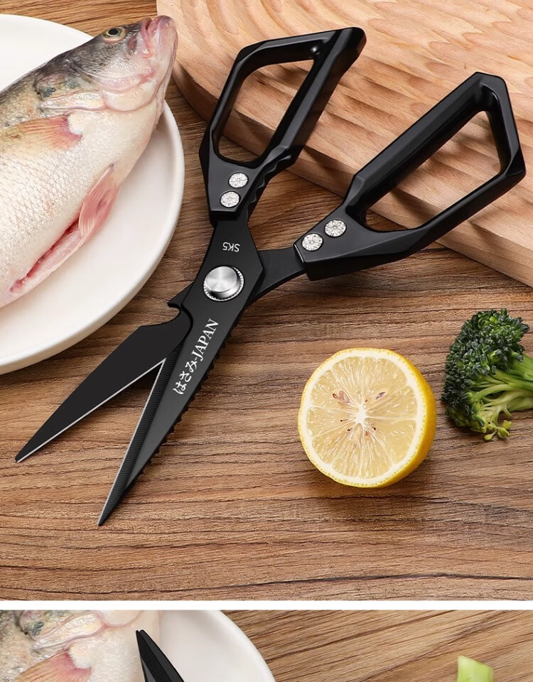 Xulin German quality Japanese-style SK5 kitchen scissors for home use black titanium stainless steel multi-purpose cutting chicken bones and killing fish Newly upgraded double anti-rust SK5 titanium-plated kitchen scissors