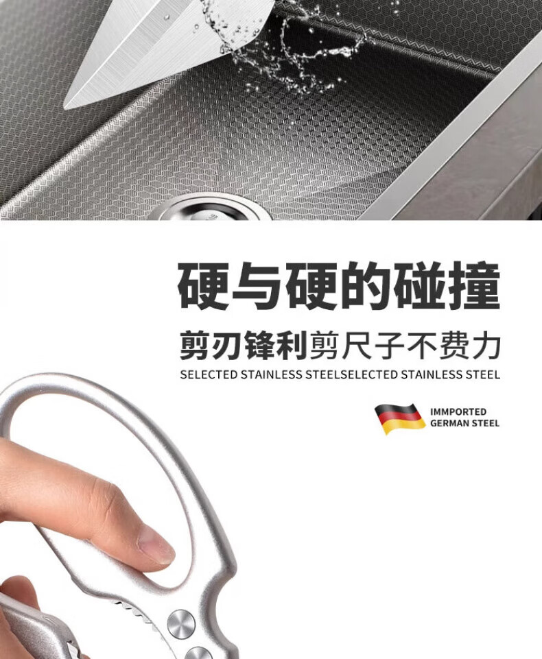 飒望【德国】高端厨房剪刀剪鸡骨头杀鱼骨头食物辅食烤肉专用大剪刀  1把【强力加厚 大嘴头设计】银色鸡骨剪刀 【锋利耐用 专治硬骨头】