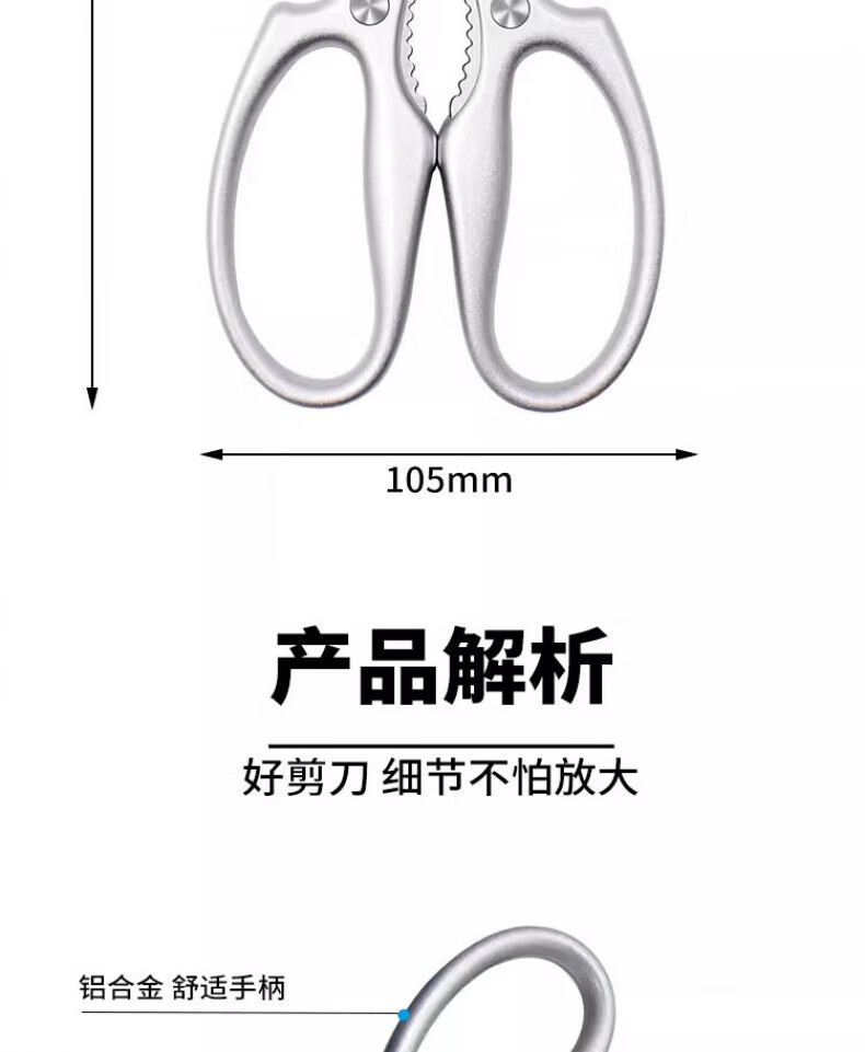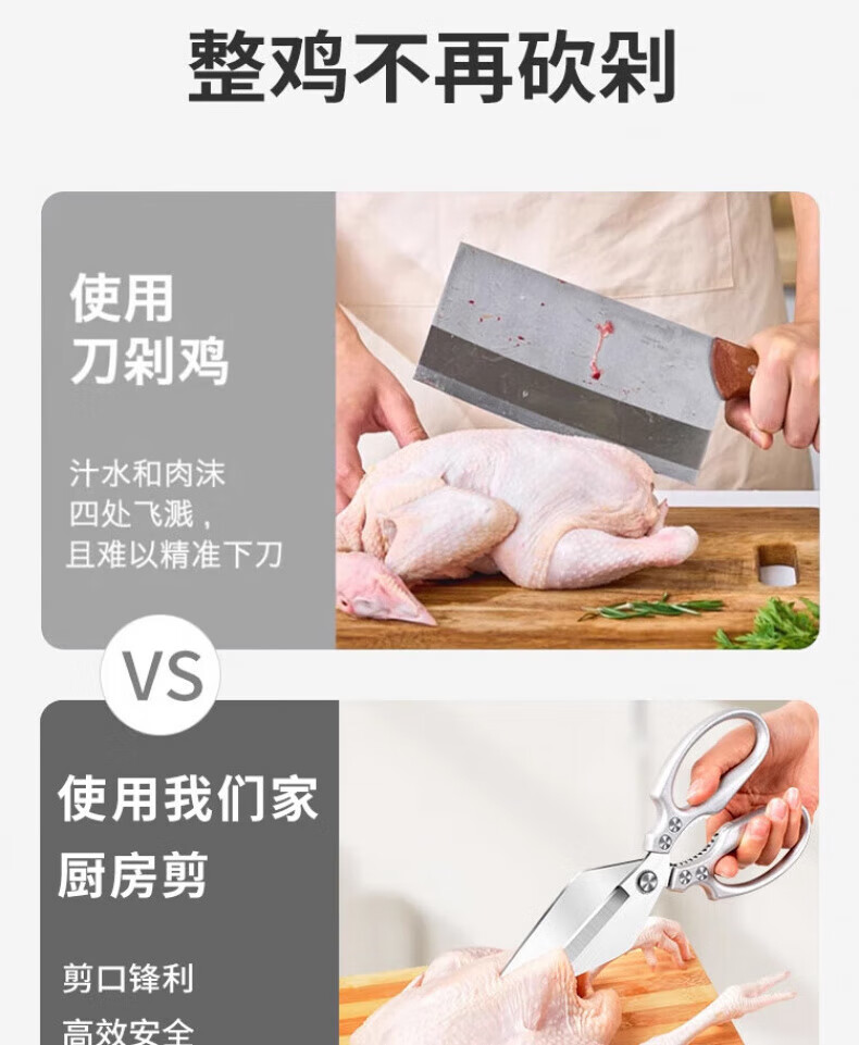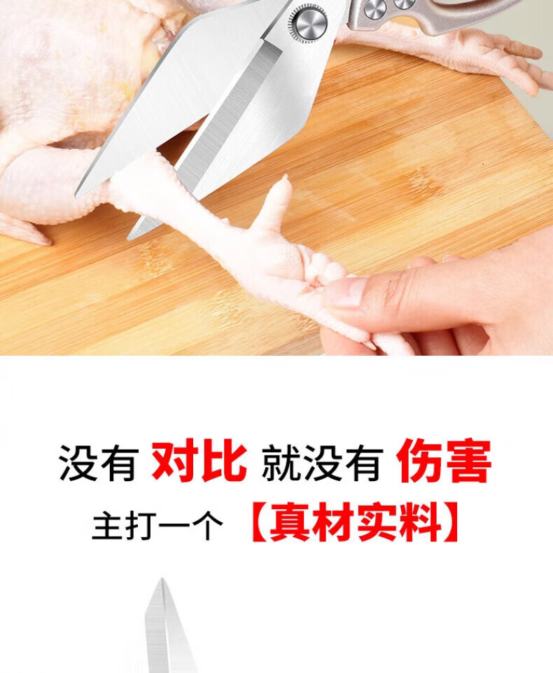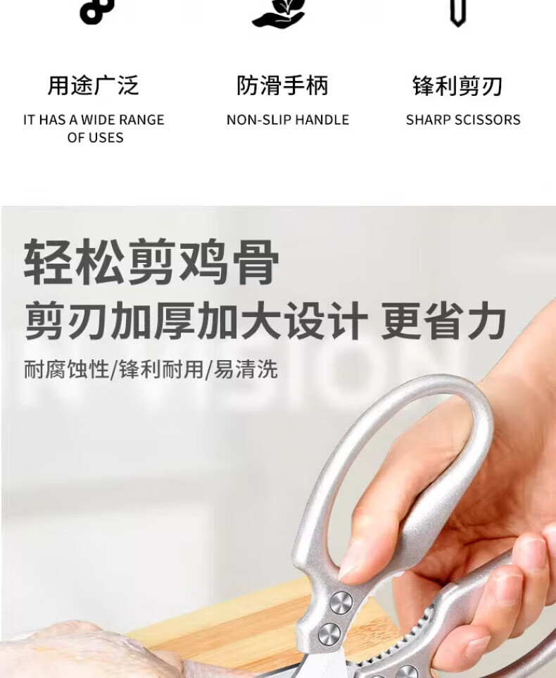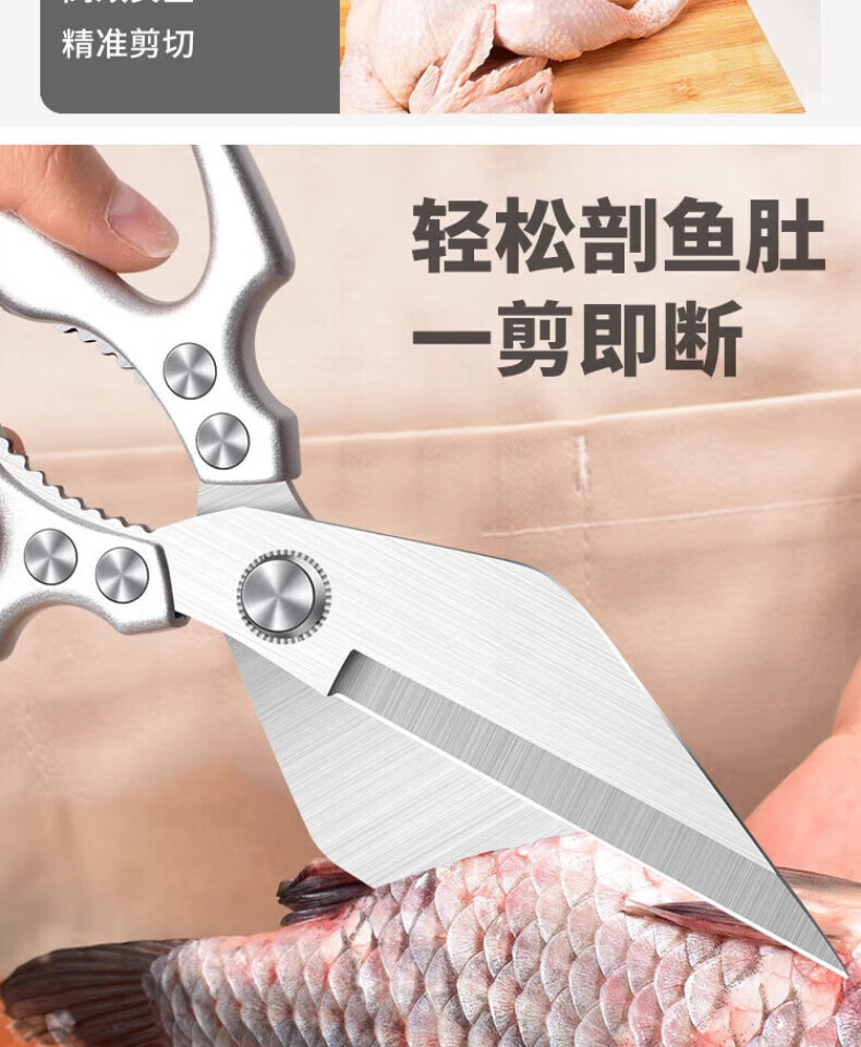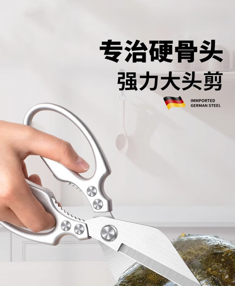 飒望【德国】高端厨房剪刀剪鸡骨头杀鱼骨头食物辅食烤肉专用大剪刀 1把【强力加厚 大嘴头设计】银色鸡骨剪刀 【锋利耐用 专治硬骨头】
