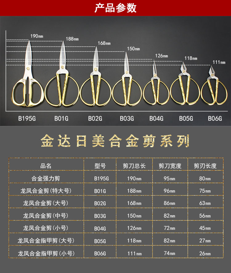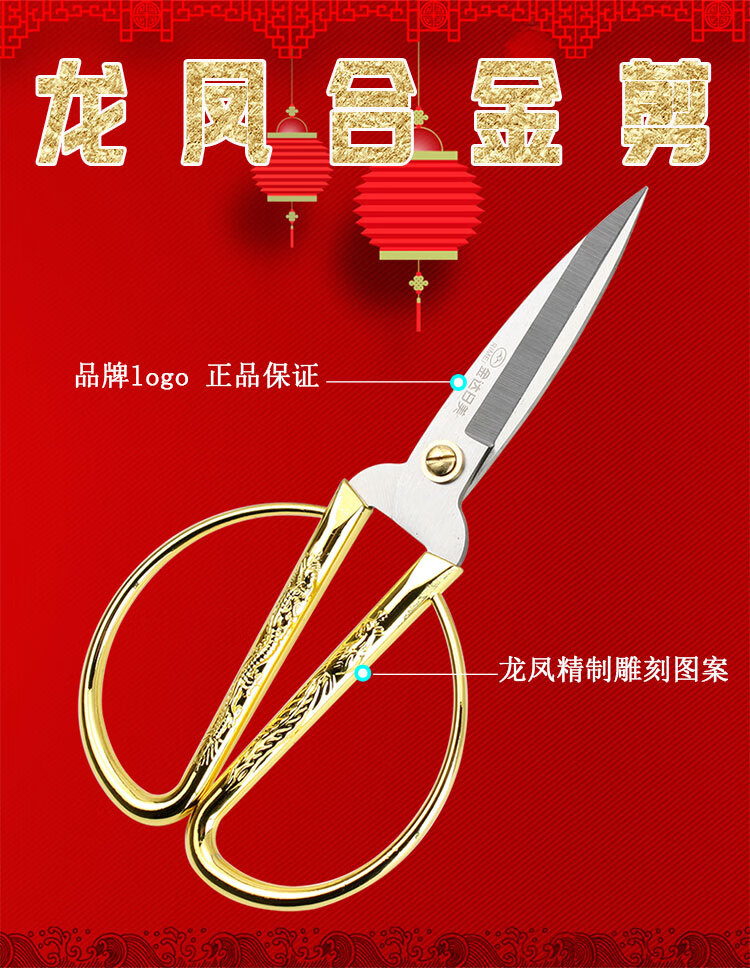 Jinda Rimei Dragon and Phoenix Alloy Scissors Household Stainless Steel Scissors Alloy Powerful Scissors Home Kitchen Wedding Opening Ribbon Cutting Festive B03G Medium Size