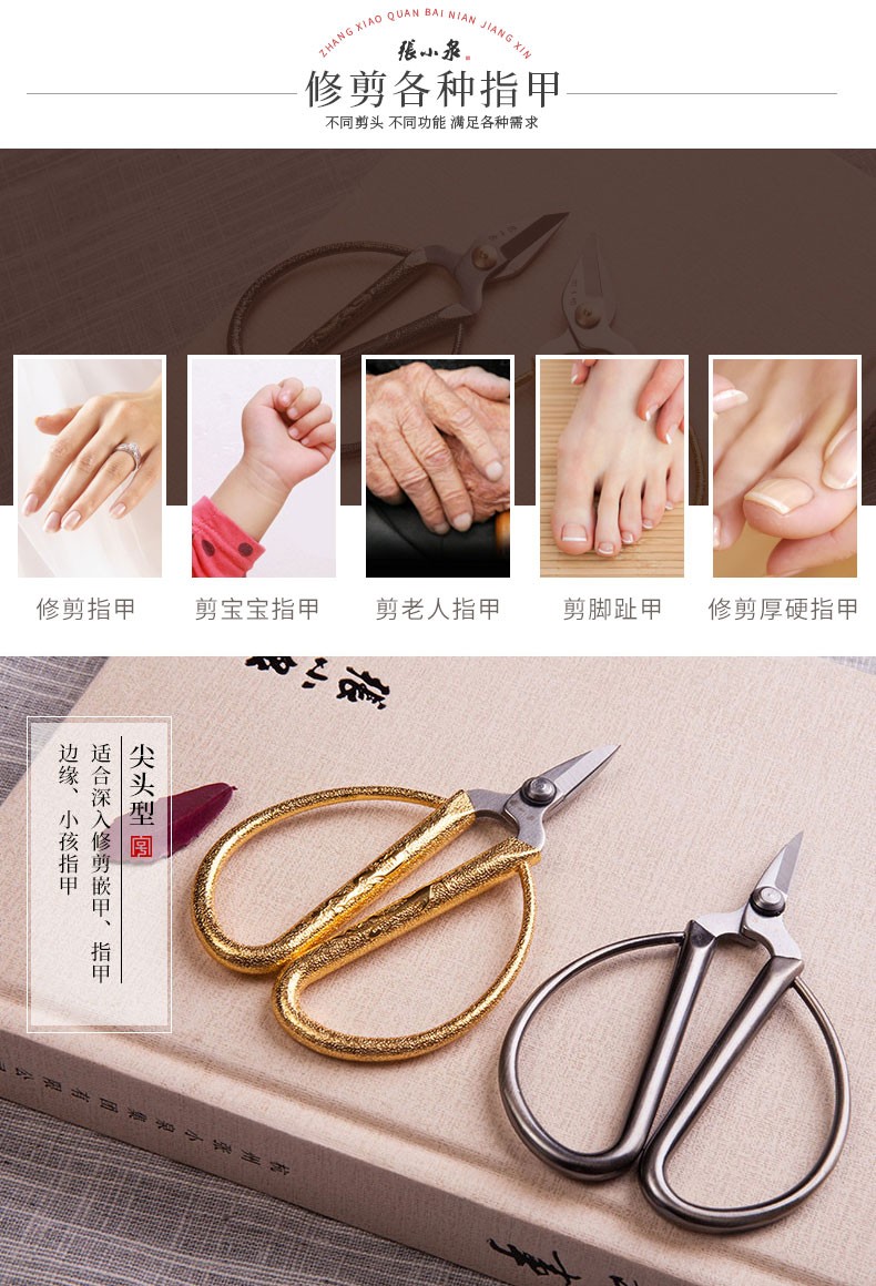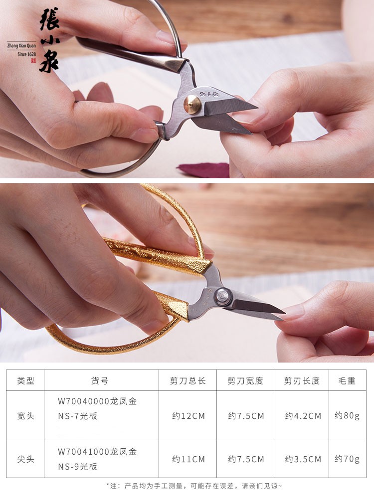 Zhang Xiaoquan alloy scissors, dragon and phoenix scissors, manicure pliers, small scissors, nail repair scissors, dead skin scissors, thick nail trimmer, single pointed golden dragon and phoenix handle scissors W70041000