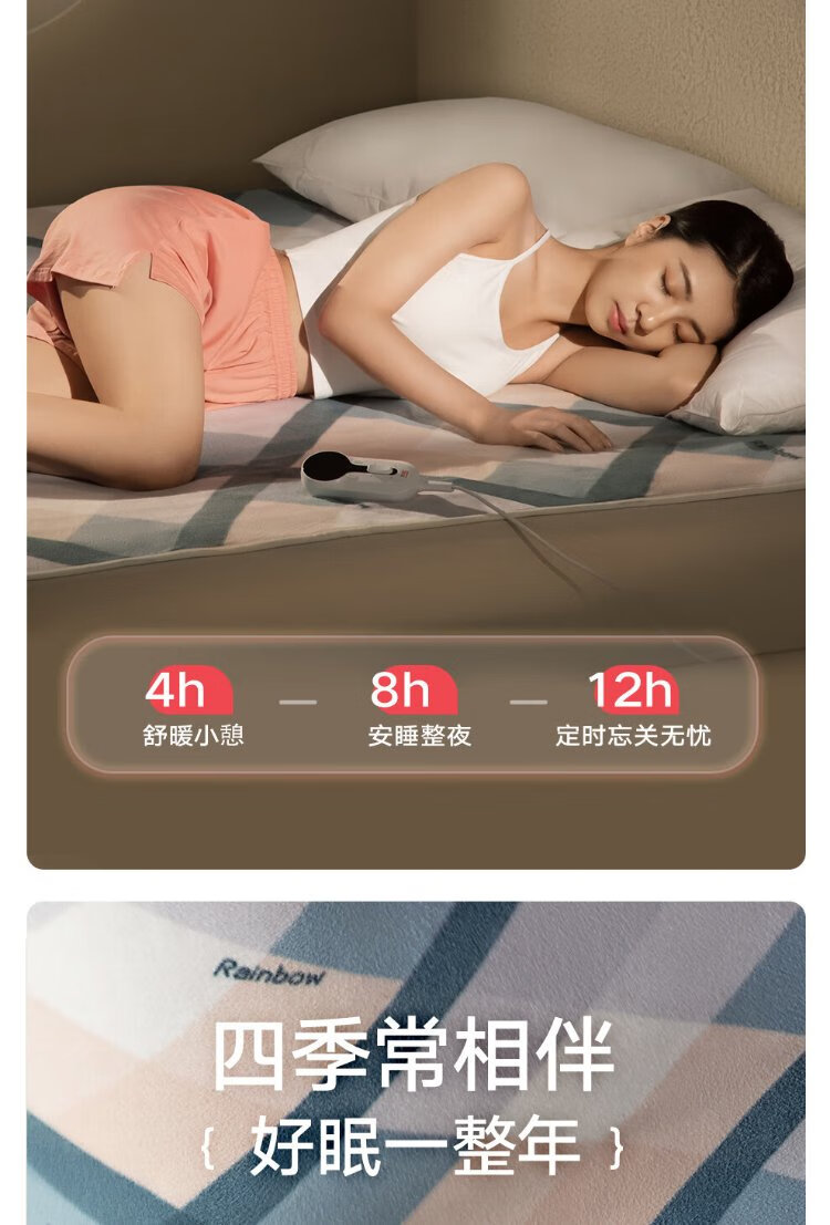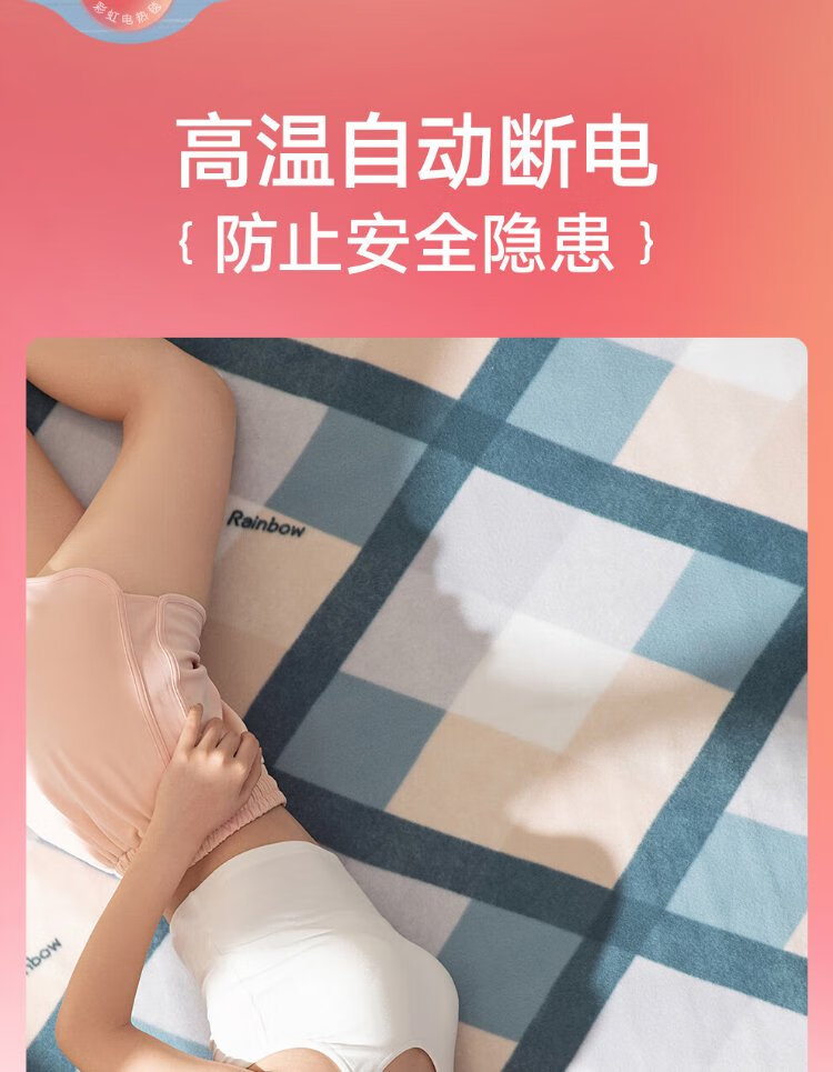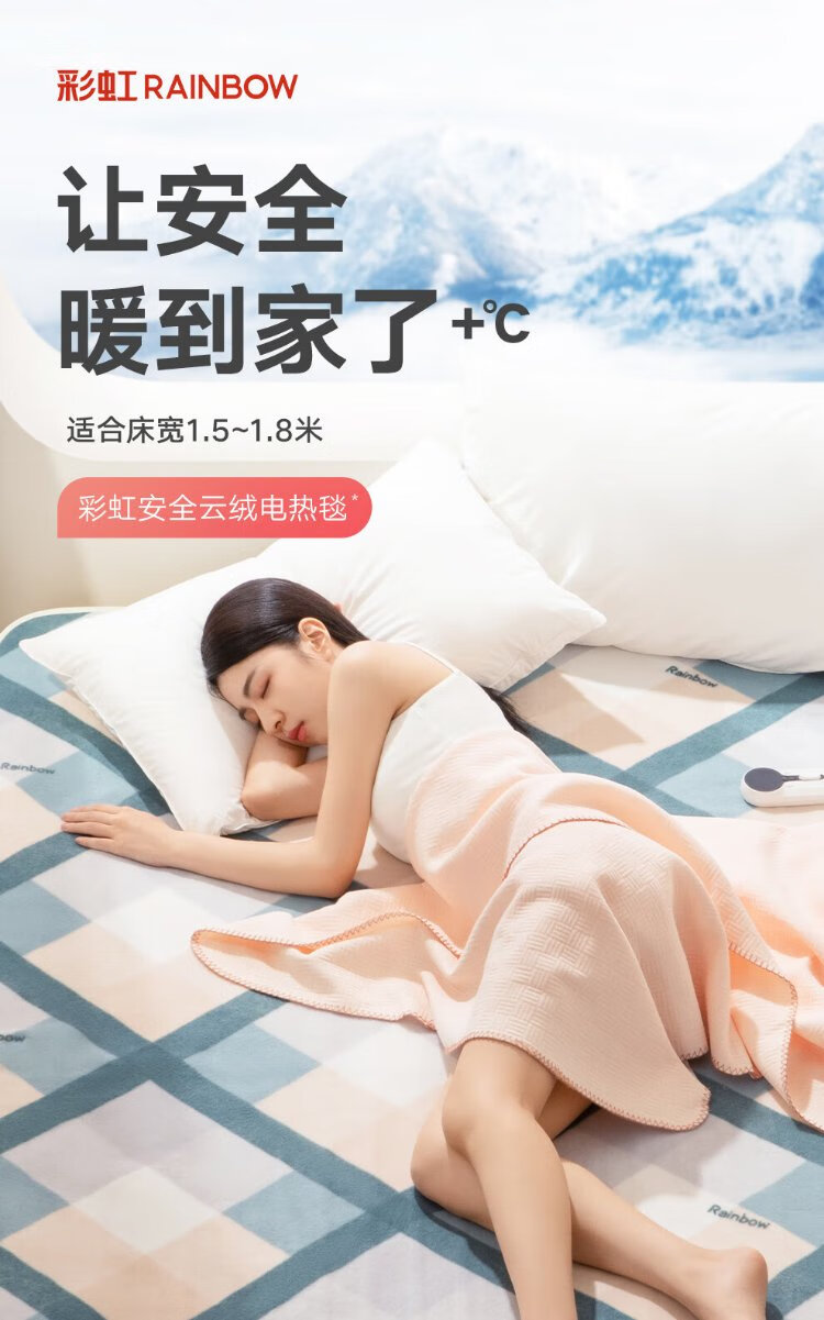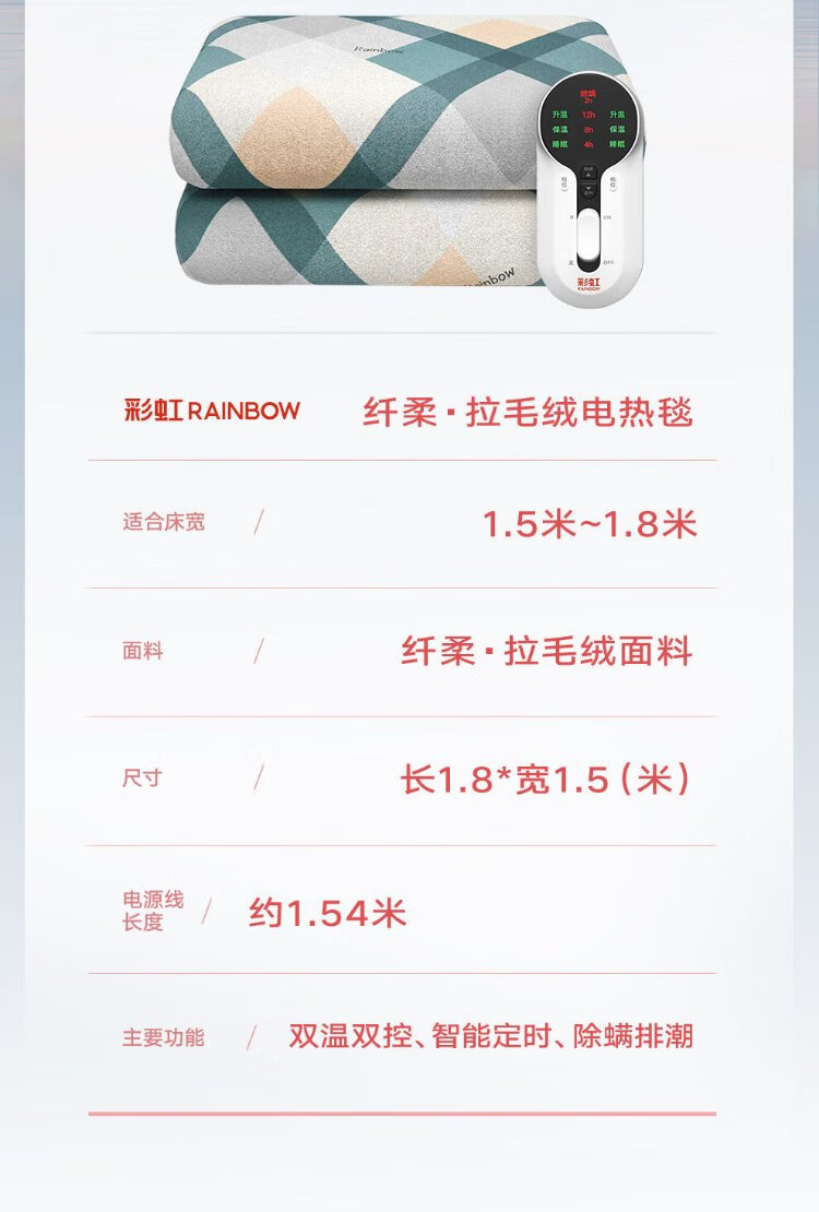 彩虹双人自动断电智能定时双温双控除螨拉毛绒电热毯电褥子1.8*1.5米