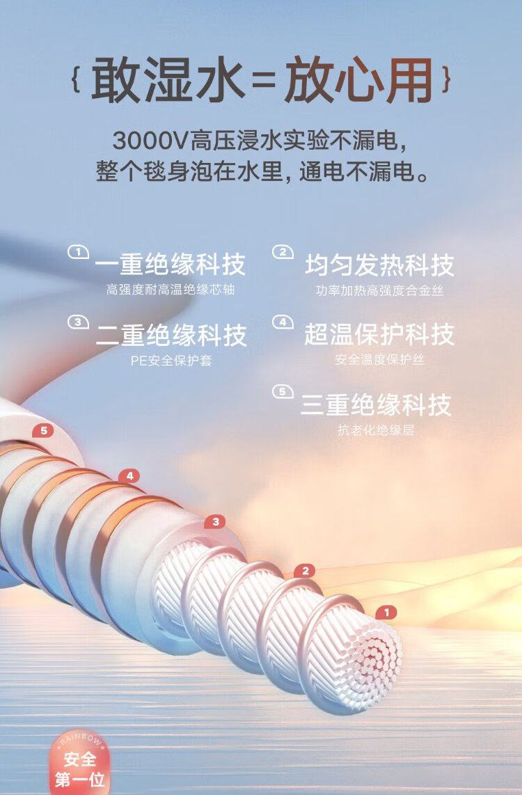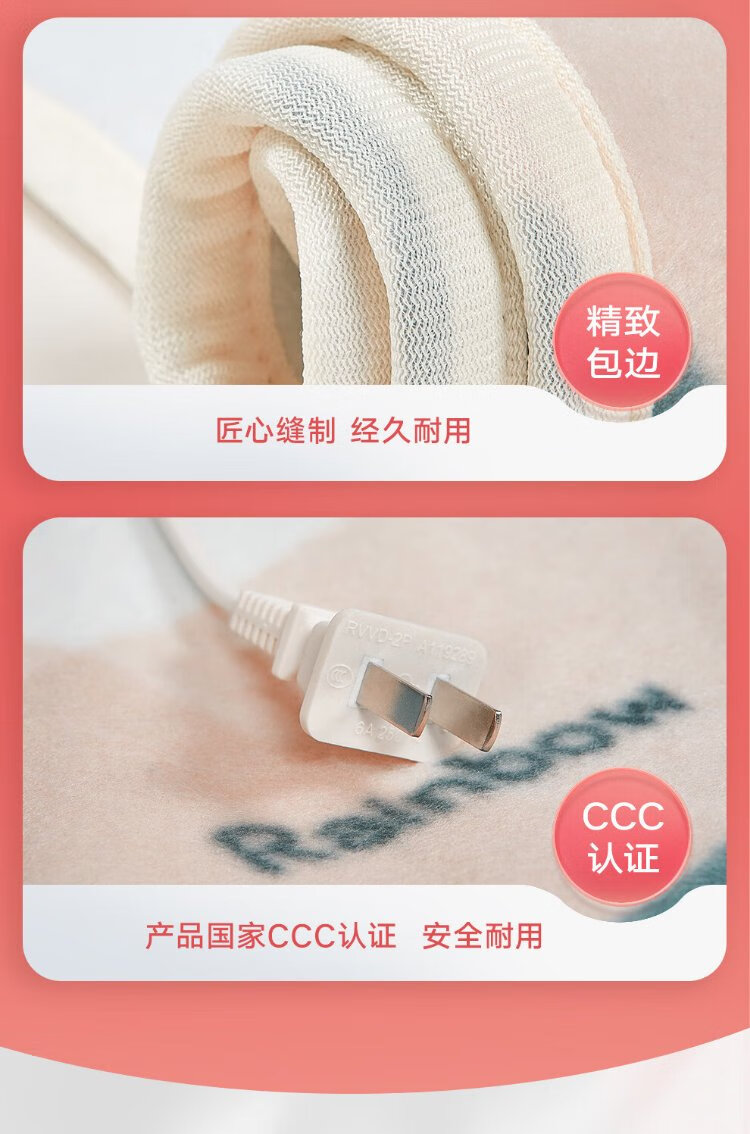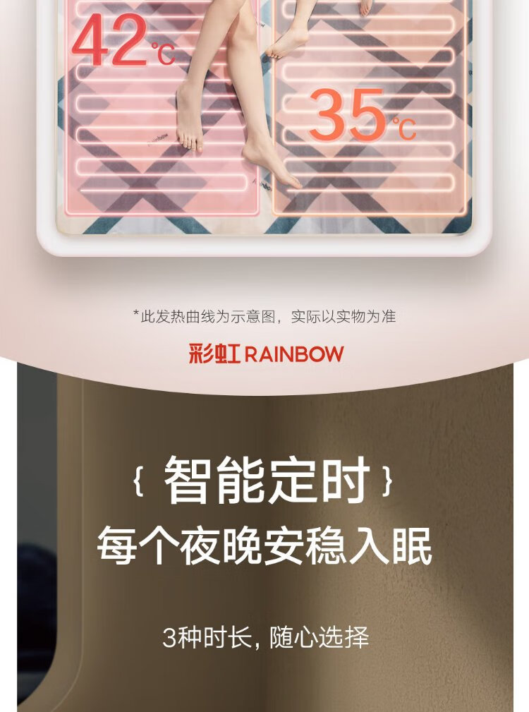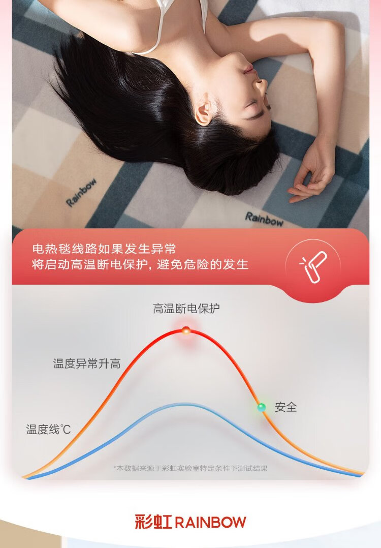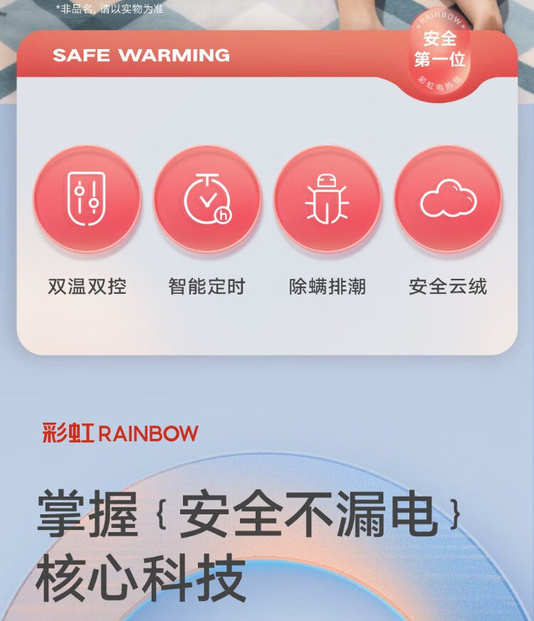 彩虹双人自动断电智能定时双温双控除螨拉毛绒电热毯电褥子1.8*1.5米